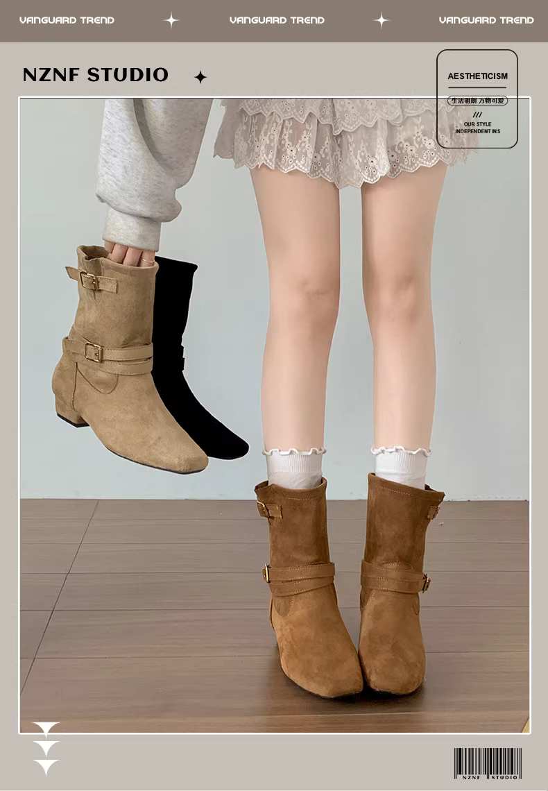- Giày bốt cao gót chunky Retro Melard dành cho nữ, kiểu mới 2025, đa năng với chân váy, tăng chiều cao, dành cho phụ nữ nhỏ nhắn.