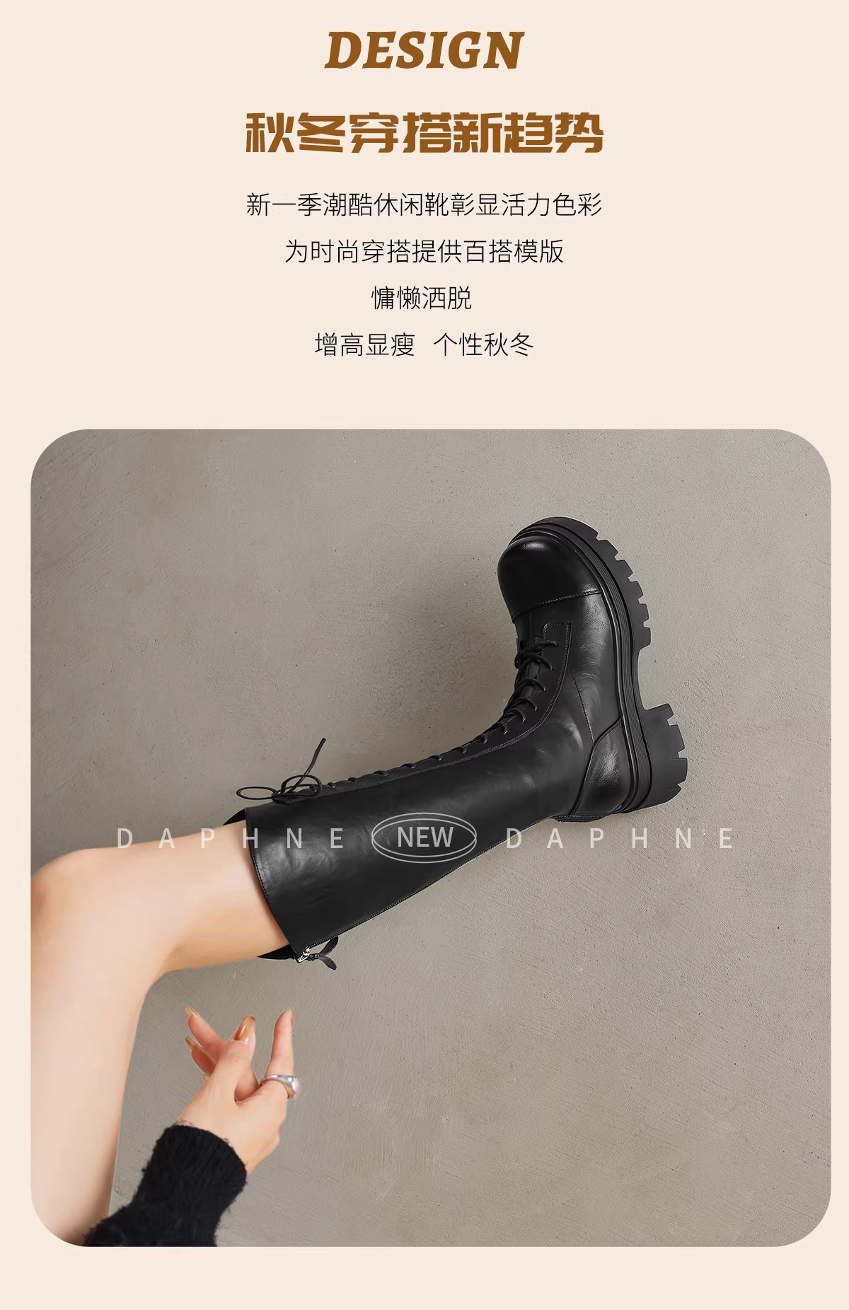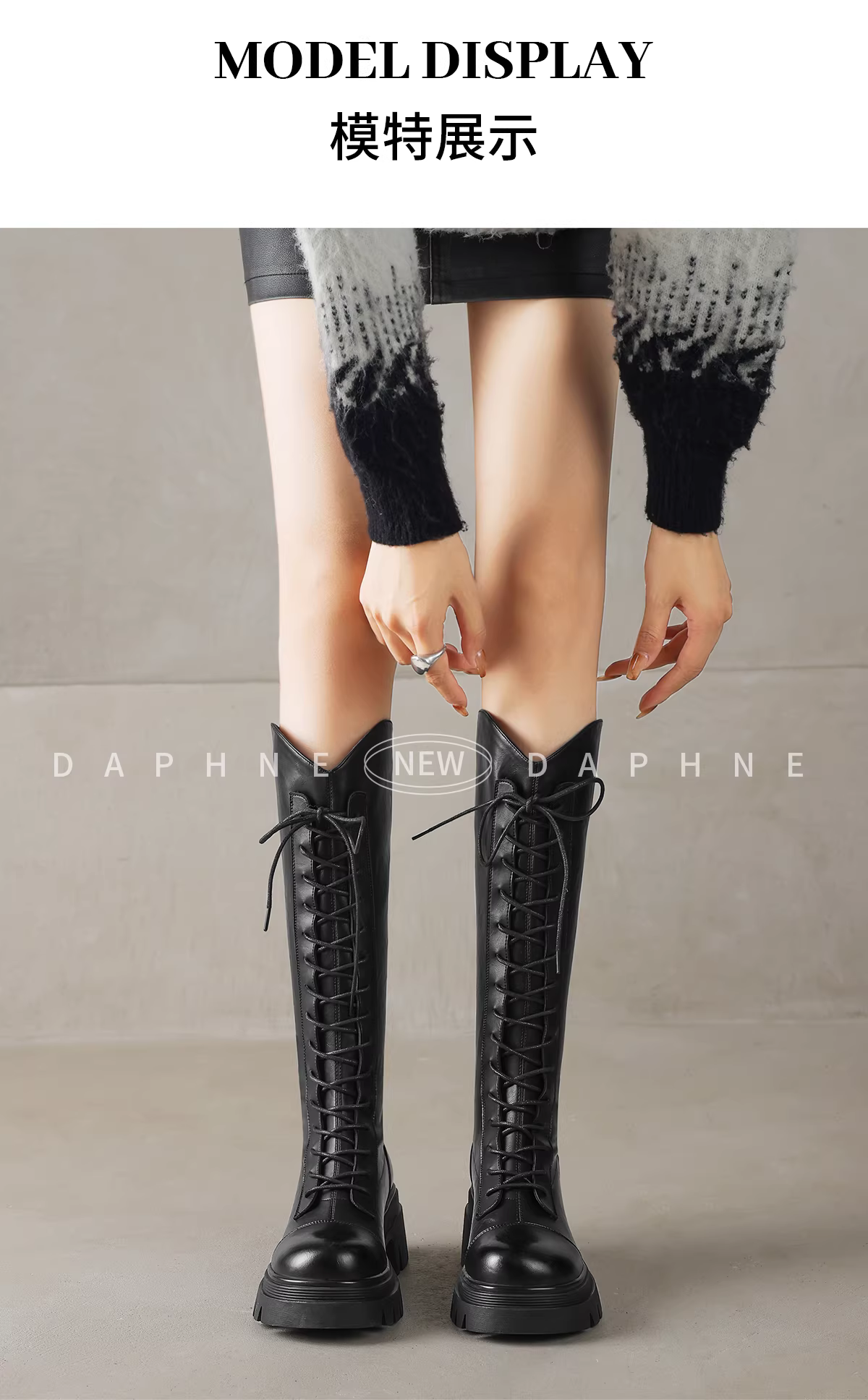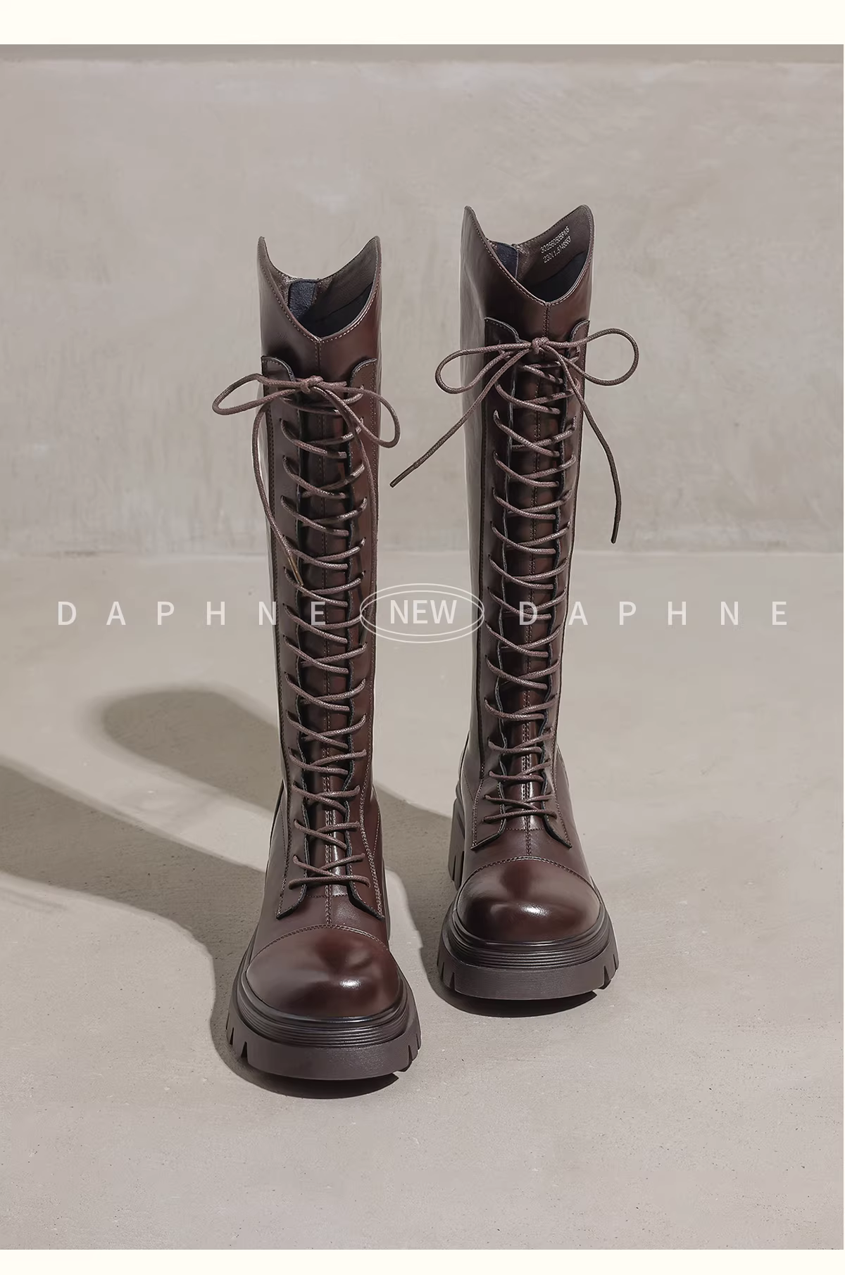 Giày bốt cao gót dài Daphne dành cho nữ kiểu mới 2025, lót lông cừu, đế dày, cao đến đầu gối, kiểu dáng ôm sát, kiểu Martin.