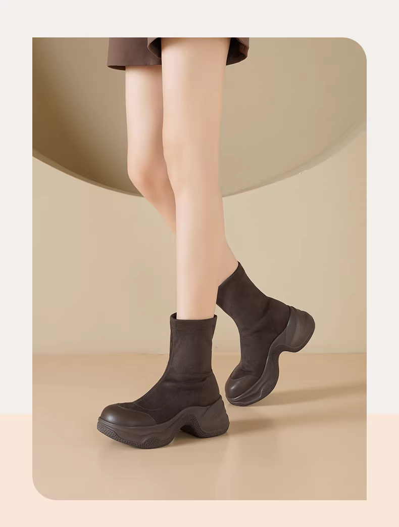 Giày bốt cao gót Daphne đế dày, kiểu ngắn dành cho nữ, mẫu mới xuân thu 2025, chất liệu da lộn, kiểu Martin, ôm chân, cao gót.
