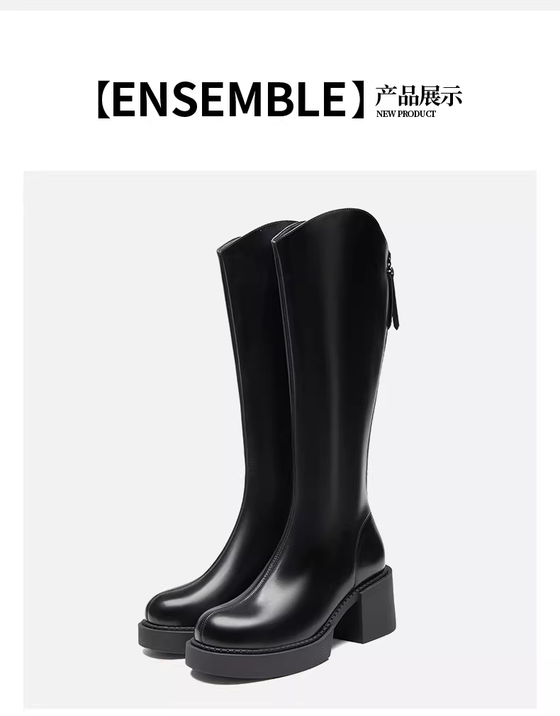Giày bốt cao gót đế dày Dadong dành cho nữ, mẫu mới thu đông 2025, đế dày tăng chiều cao, kiểu dáng ôm dáng, màu đen.