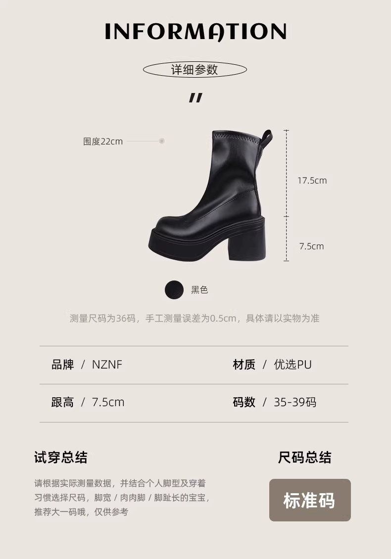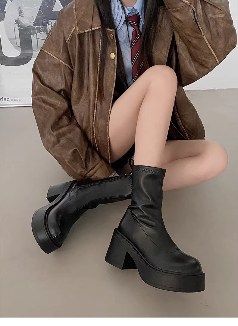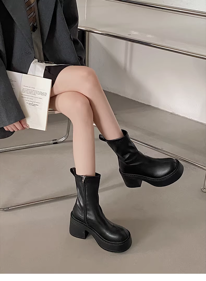 - Giày bốt cao gót đế dày, gót thô, kiểu dáng nhỏ nhắn màu đen dành cho nữ, mẫu mới thu đông 2025, kiểu dáng cổ điển, tôn dáng.