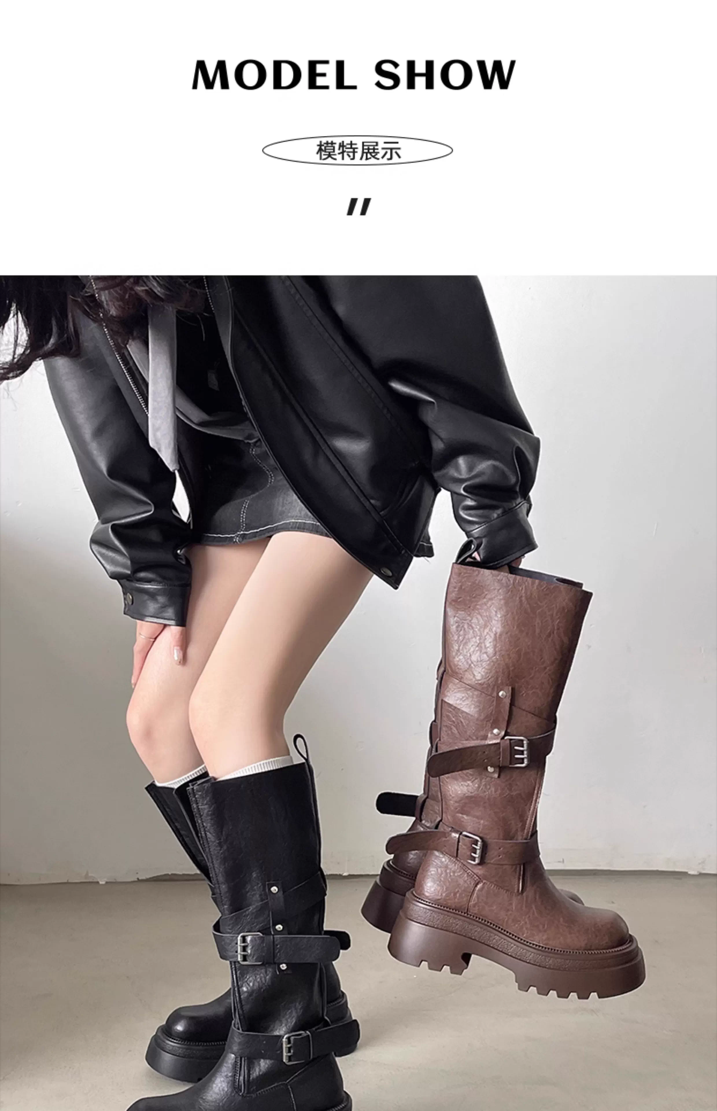 - Giày bốt cao gót đế dày kiểu retro đen dành cho nữ, mẫu mới thu đông 2025, tăng chiều cao, tôn dáng.