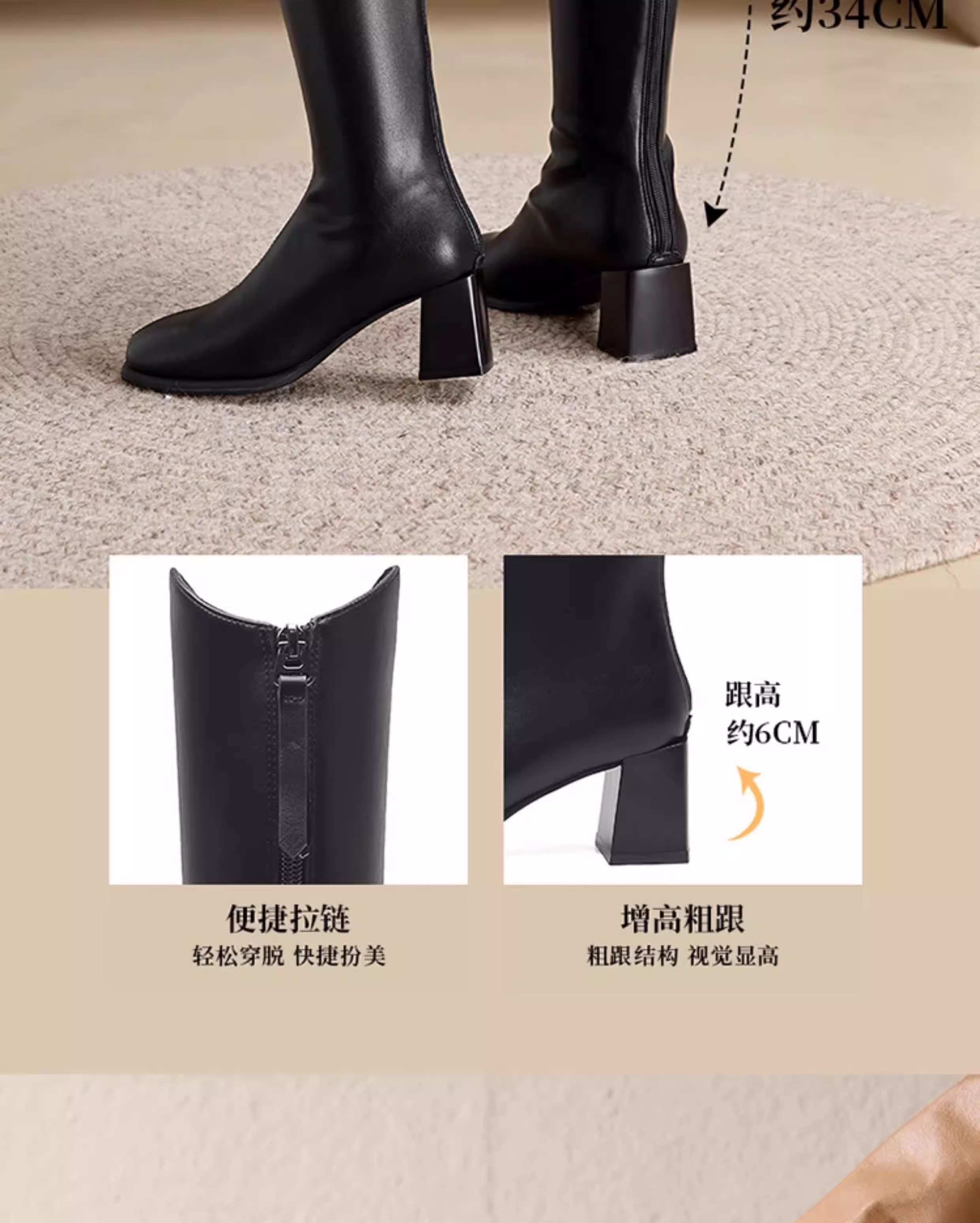- Giày bốt cao gót đế thô Dadong dành cho nữ, mẫu mới năm 2025, kiểu dáng phổ biến mùa thu đông, màu trắng, giúp thon gọn chân.