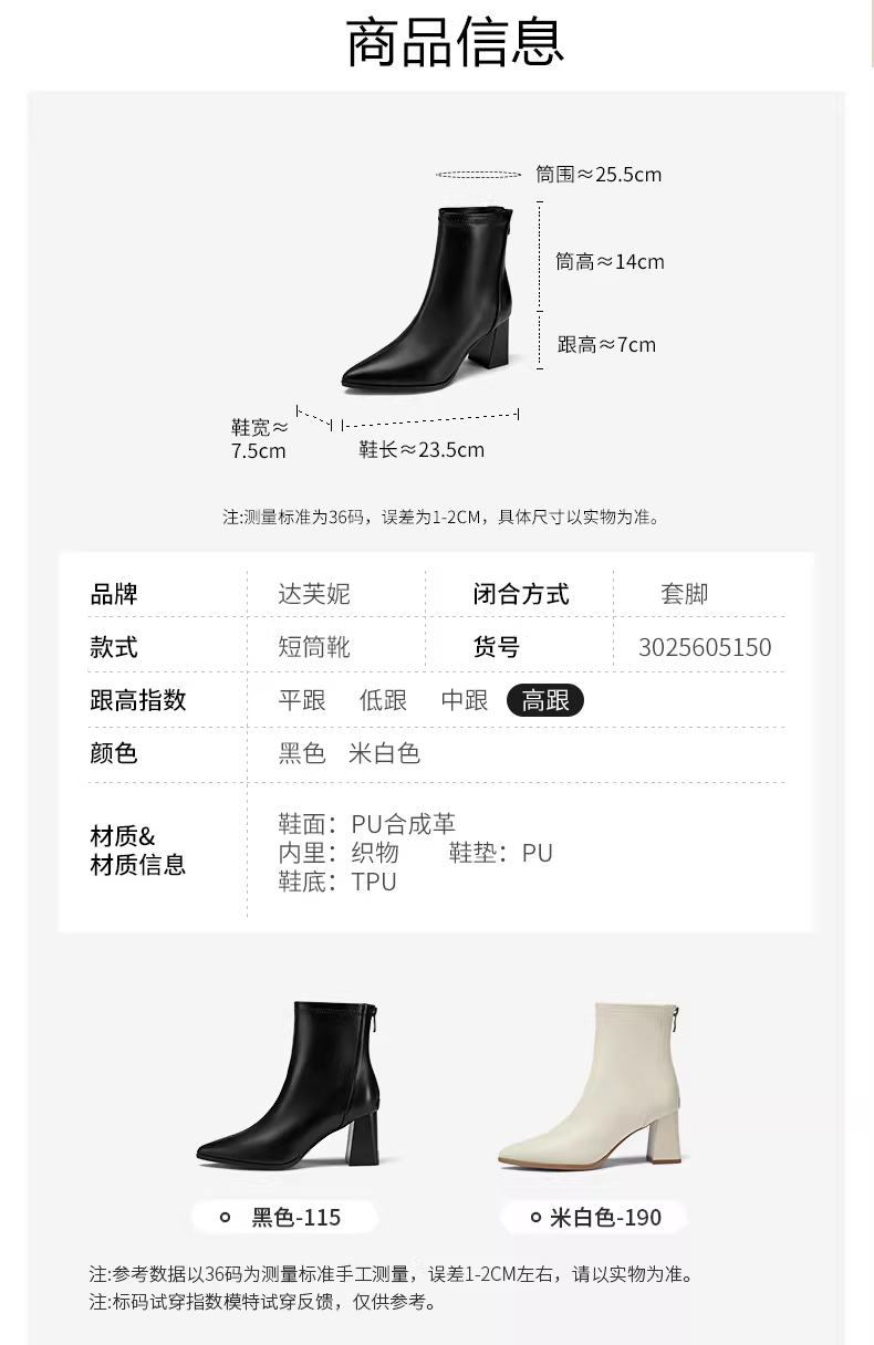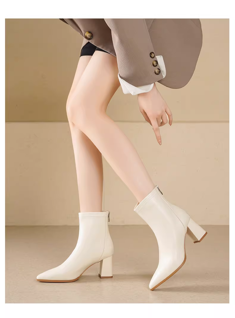 - Giày bốt cao gót đế thô Daphne dành cho nữ, mẫu mới thu đông 2025, mũi nhọn, kiểu dáng ôm sát, phong cách Pháp, kiểu Martin.