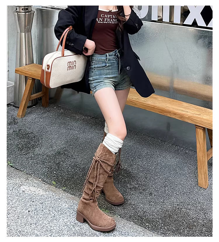 - Giày bốt cao gót đế thô kiểu cổ điển Melard dành cho nữ, phong cách mới Thu 2025, kiểu dáng đa năng, tôn dáng.