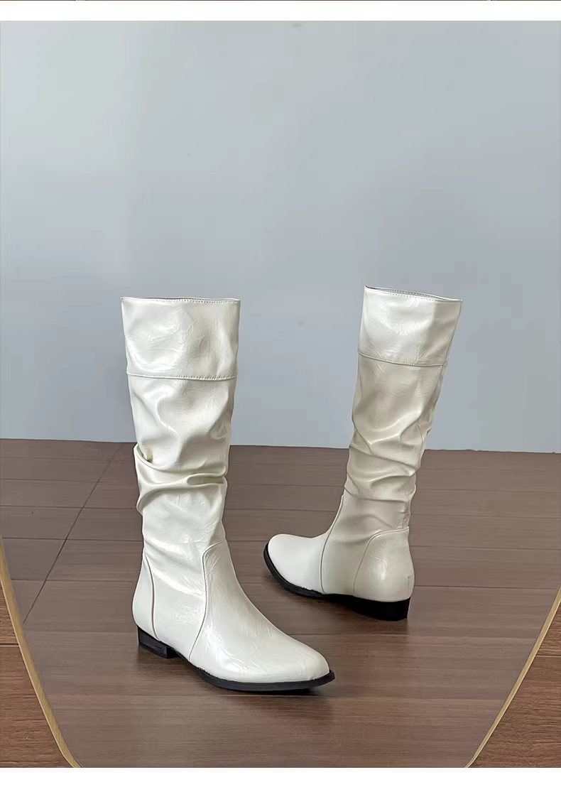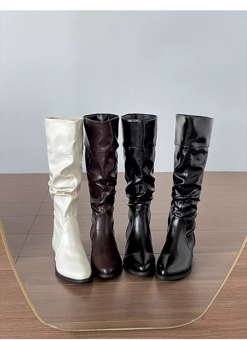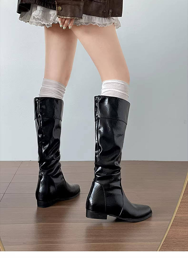 - Giày bốt cao gót mũi nhọn kiểu Anh màu đen dành cho nữ, bốt dài, bốt cưỡi ngựa cổ điển thu đông 2025 mới, kiểu dáng thon gọn.