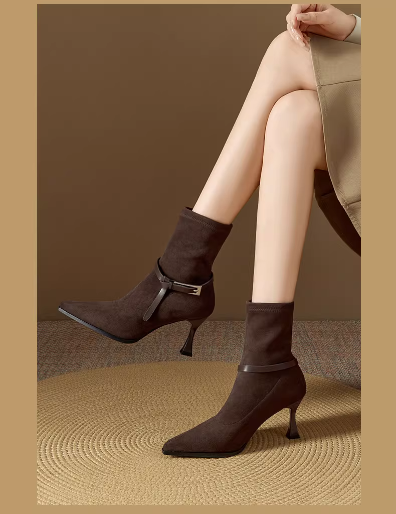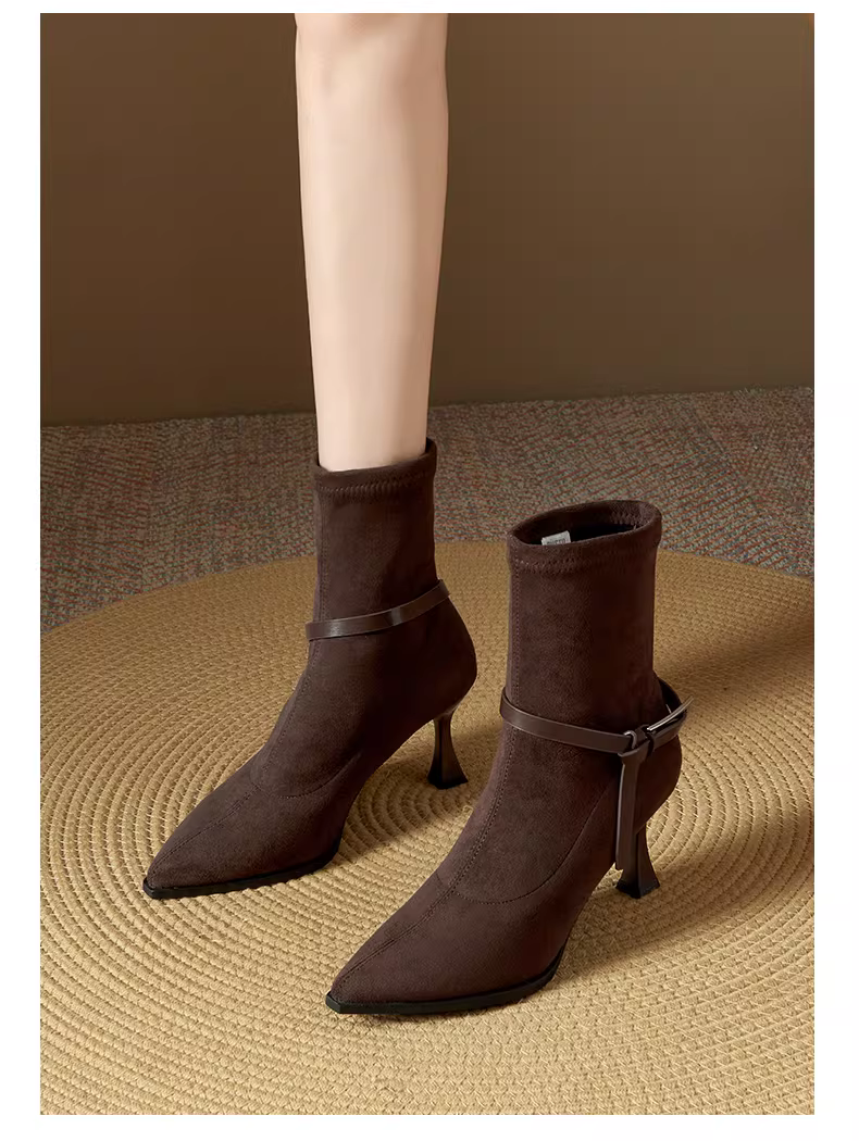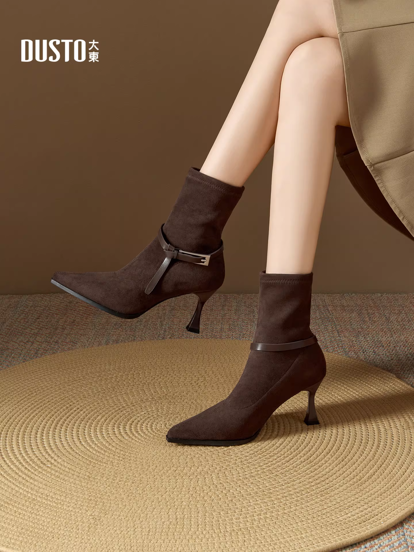 Giày bốt cao gót mũi nhọn thời trang Dadong dành cho nữ, mẫu mới thu đông 2025, kiểu dáng ôm sát, kiểu Chelsea.