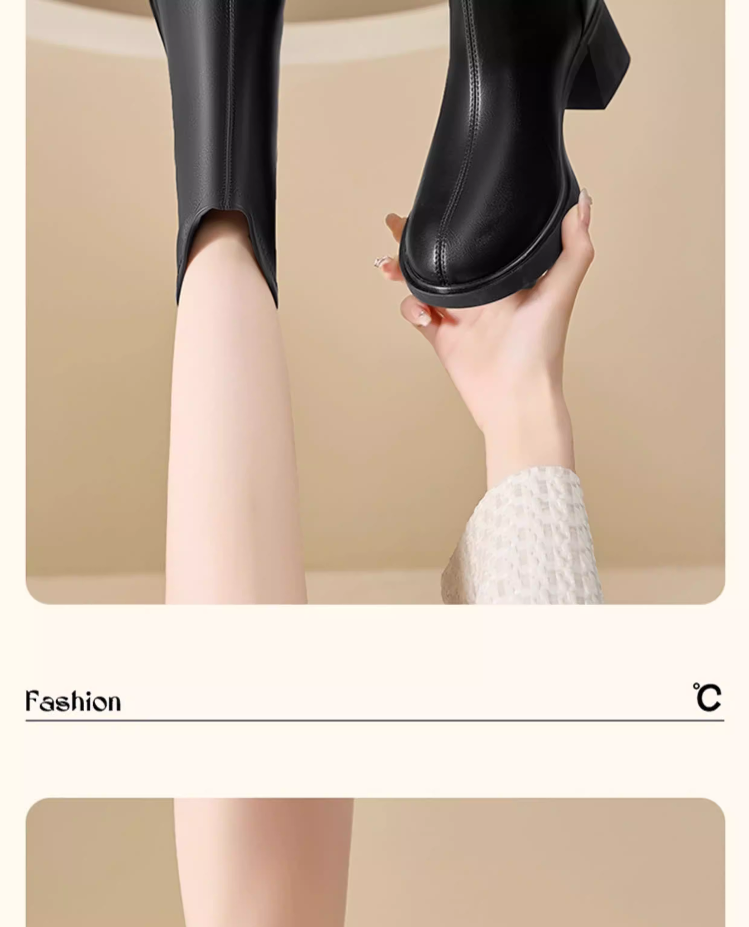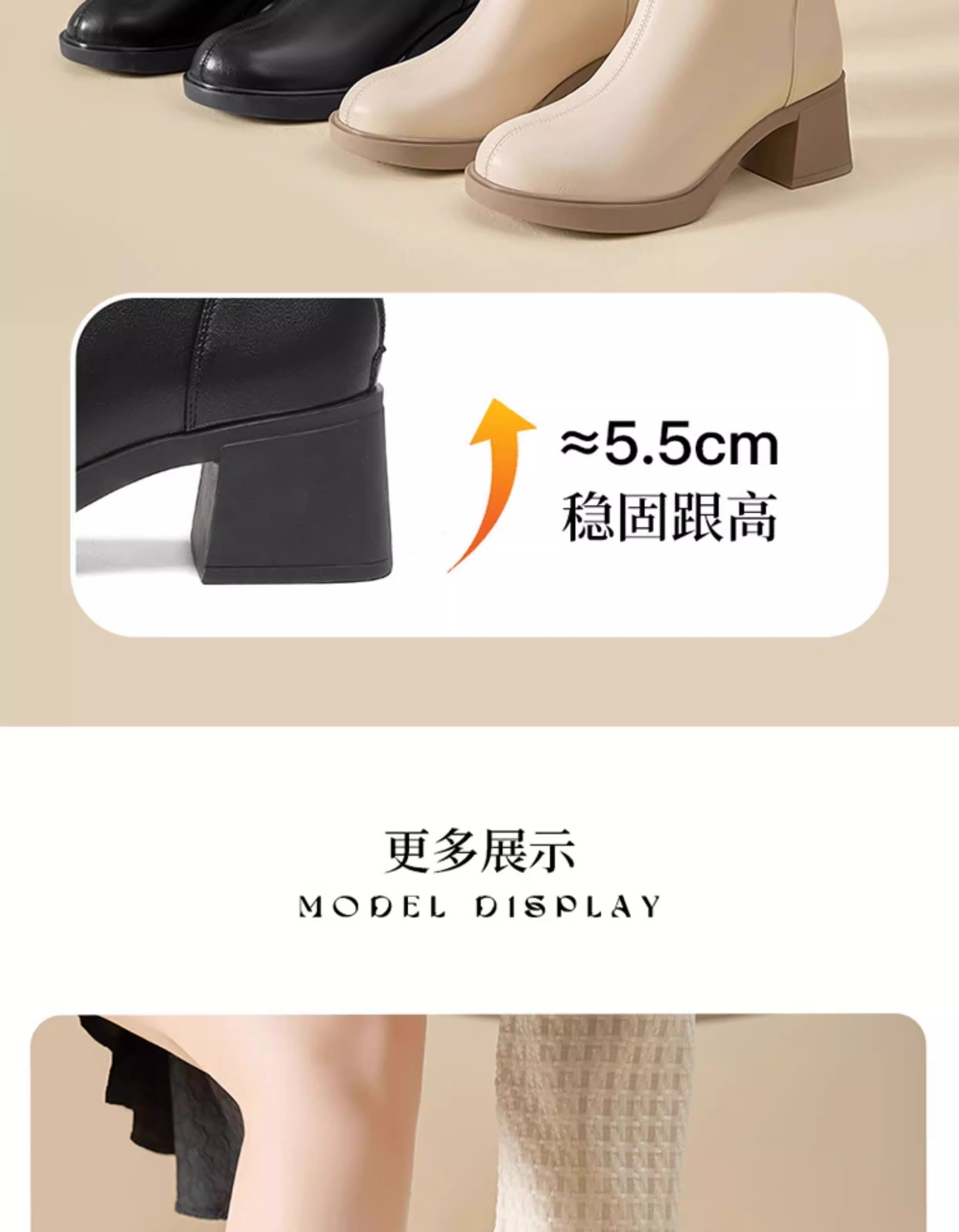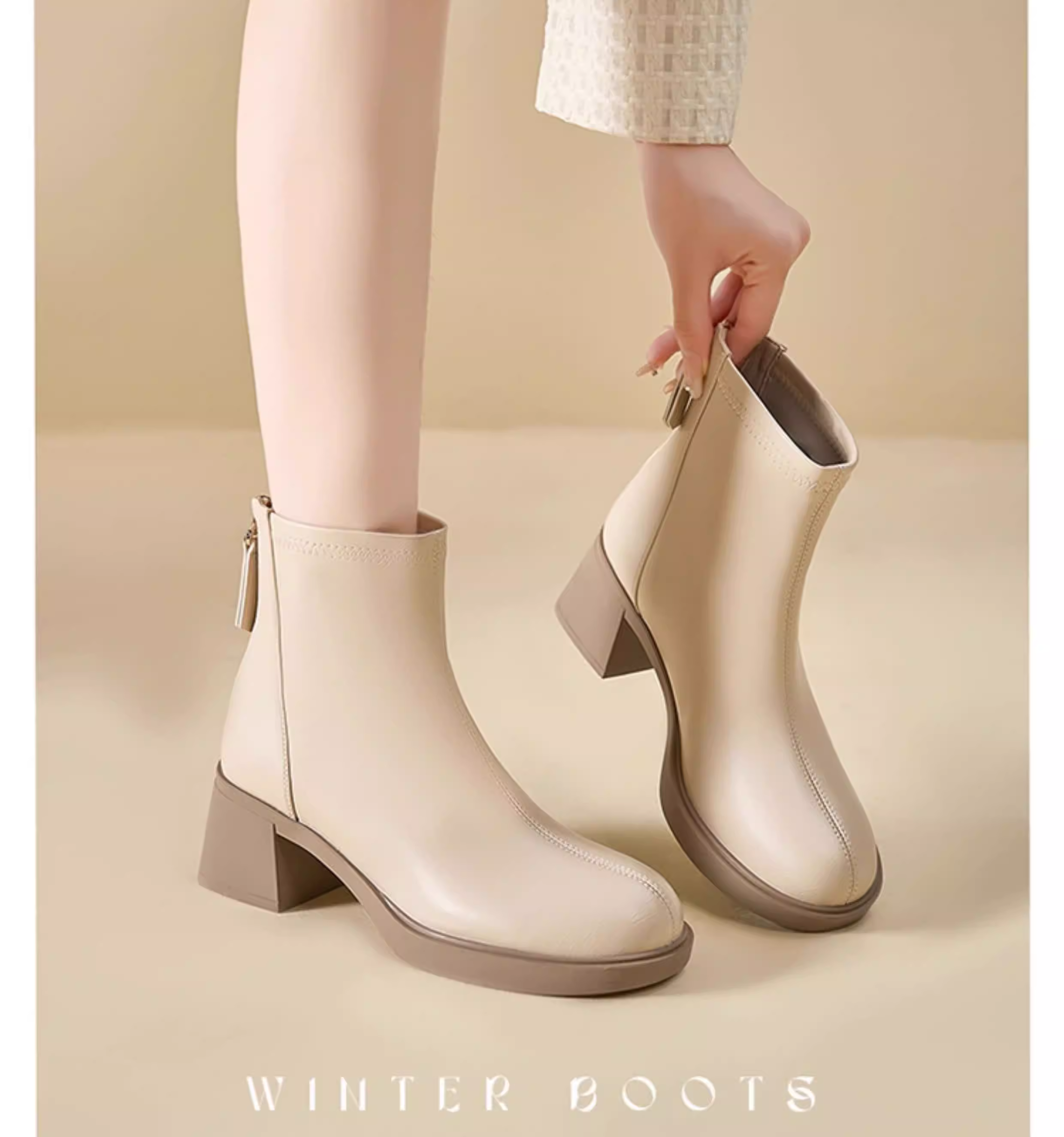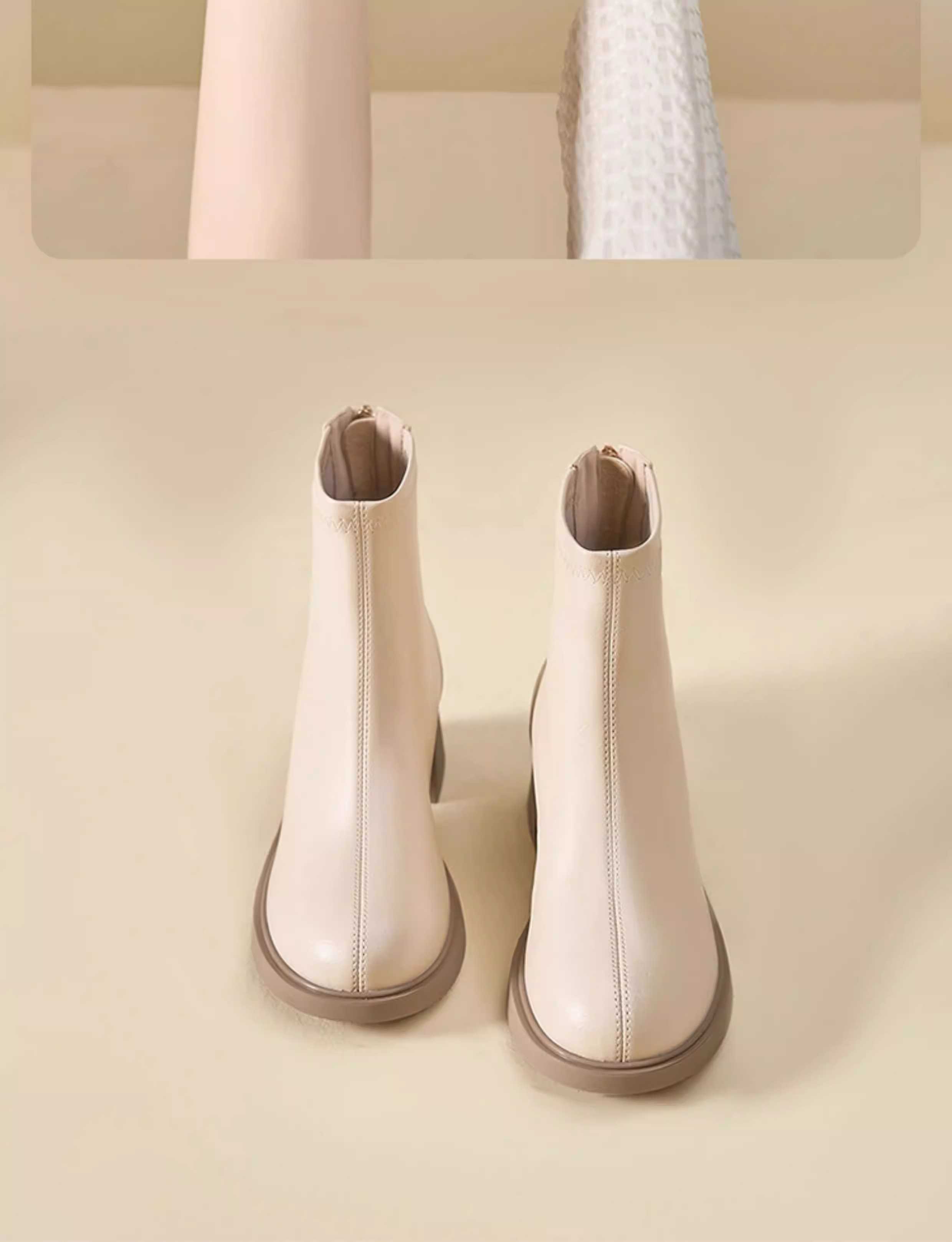 Giày bốt cao gót ngắn Dadong dành cho nữ 2025, mẫu mới thu đông, gót dày, kiểu Pháp, phối chân váy, màu trắng, kiểu Martin.