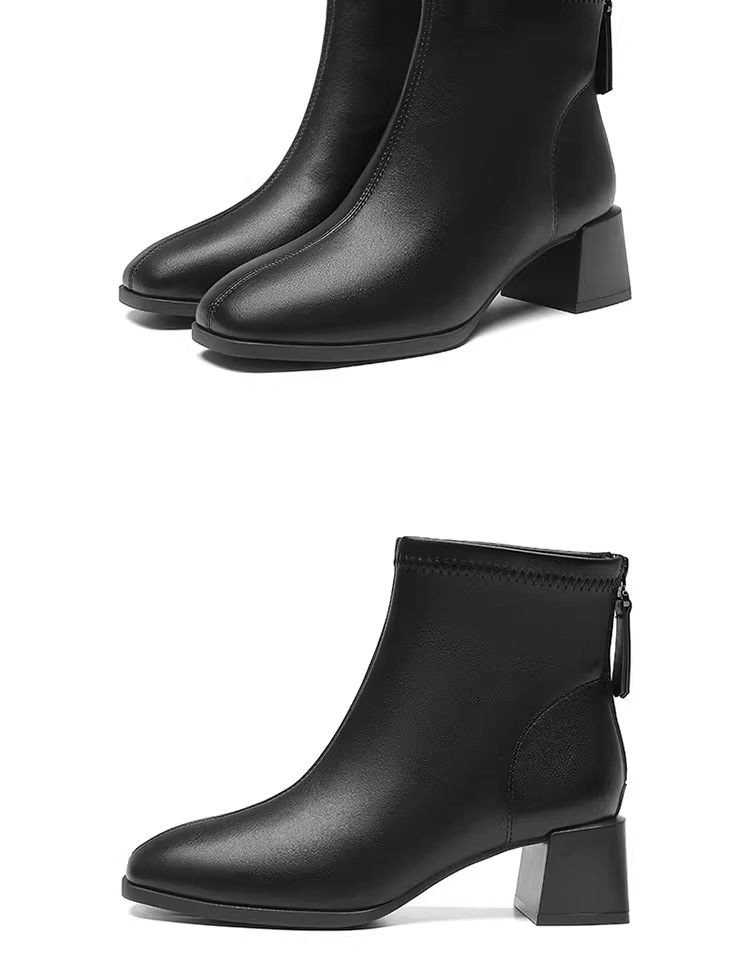 - Giày bốt cao gót ngắn Dadong dành cho nữ, mẫu mới thu đông 2025, giày bốt nữ màu đen hot trend, giày bốt gót thô, giày Chelsea, giày bốt ôm sát.