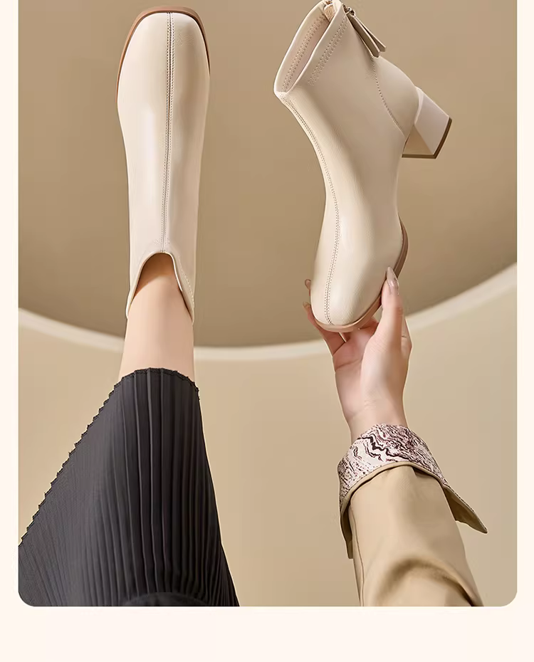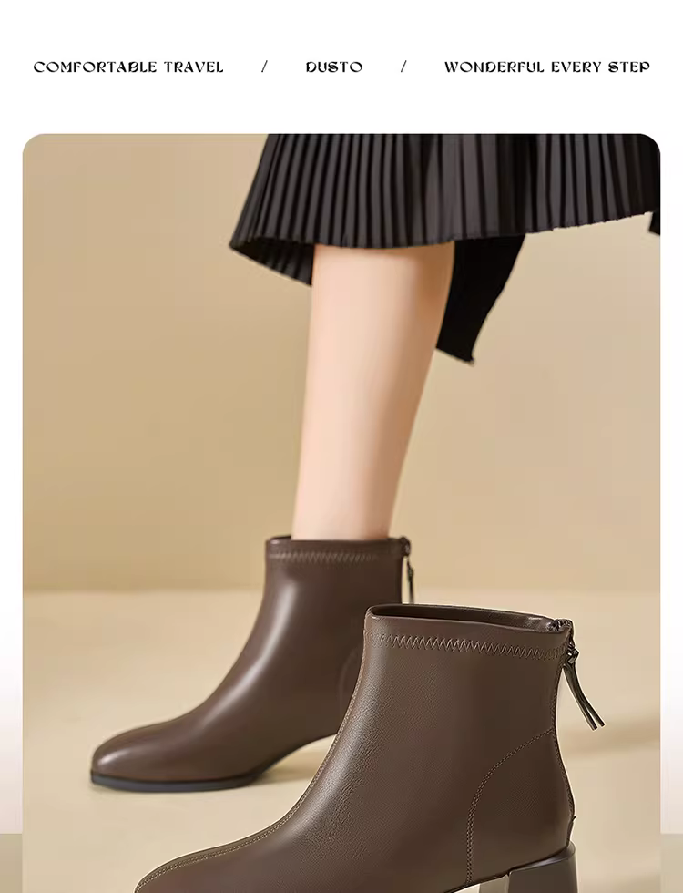 - Giày bốt cao gót ngắn Dadong Meilade dành cho nữ 2025 mới mùa thu đông giày bốt mũi vuông gót dày giày bốt dáng ôm giày Chelsea nữ