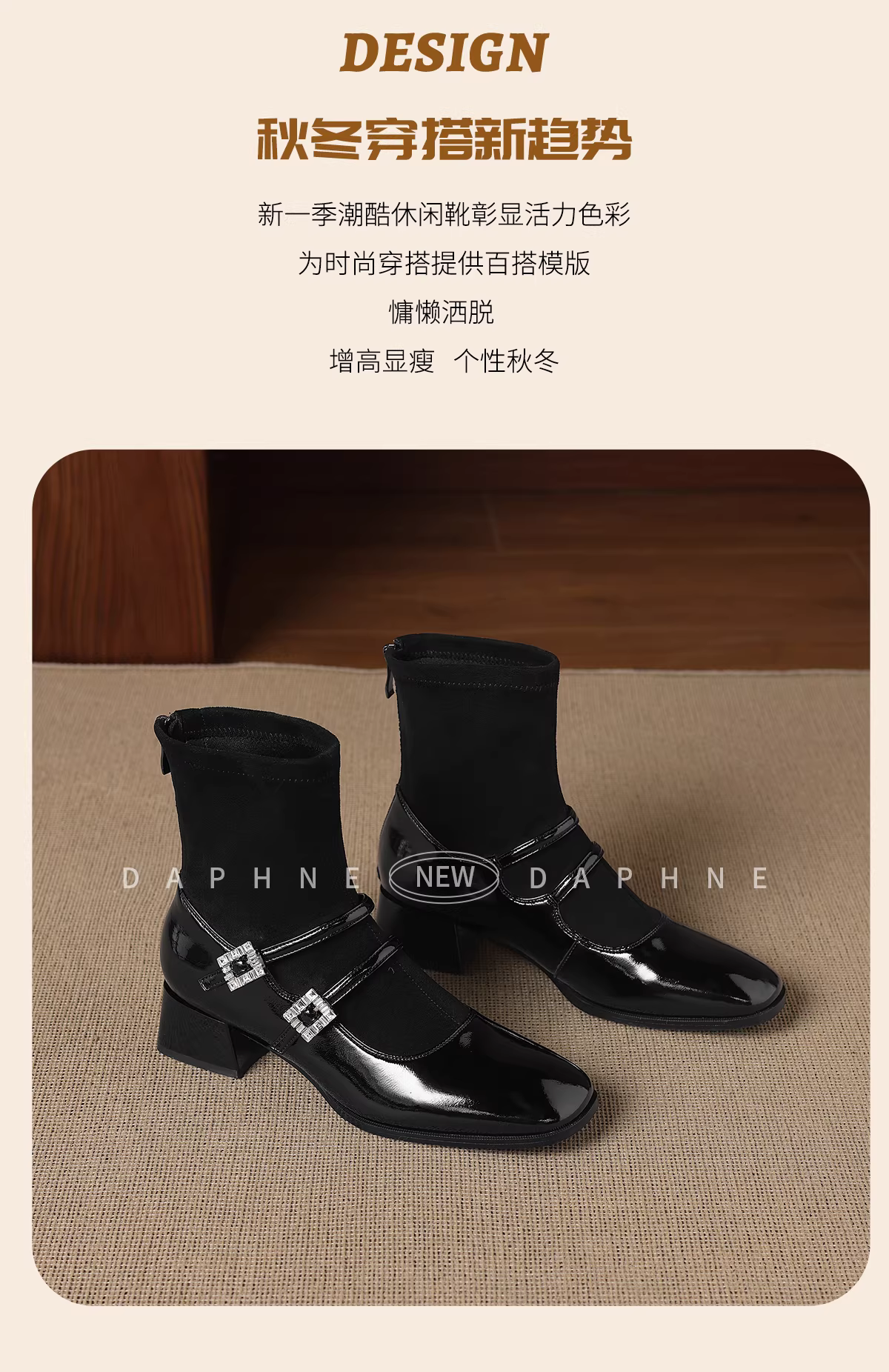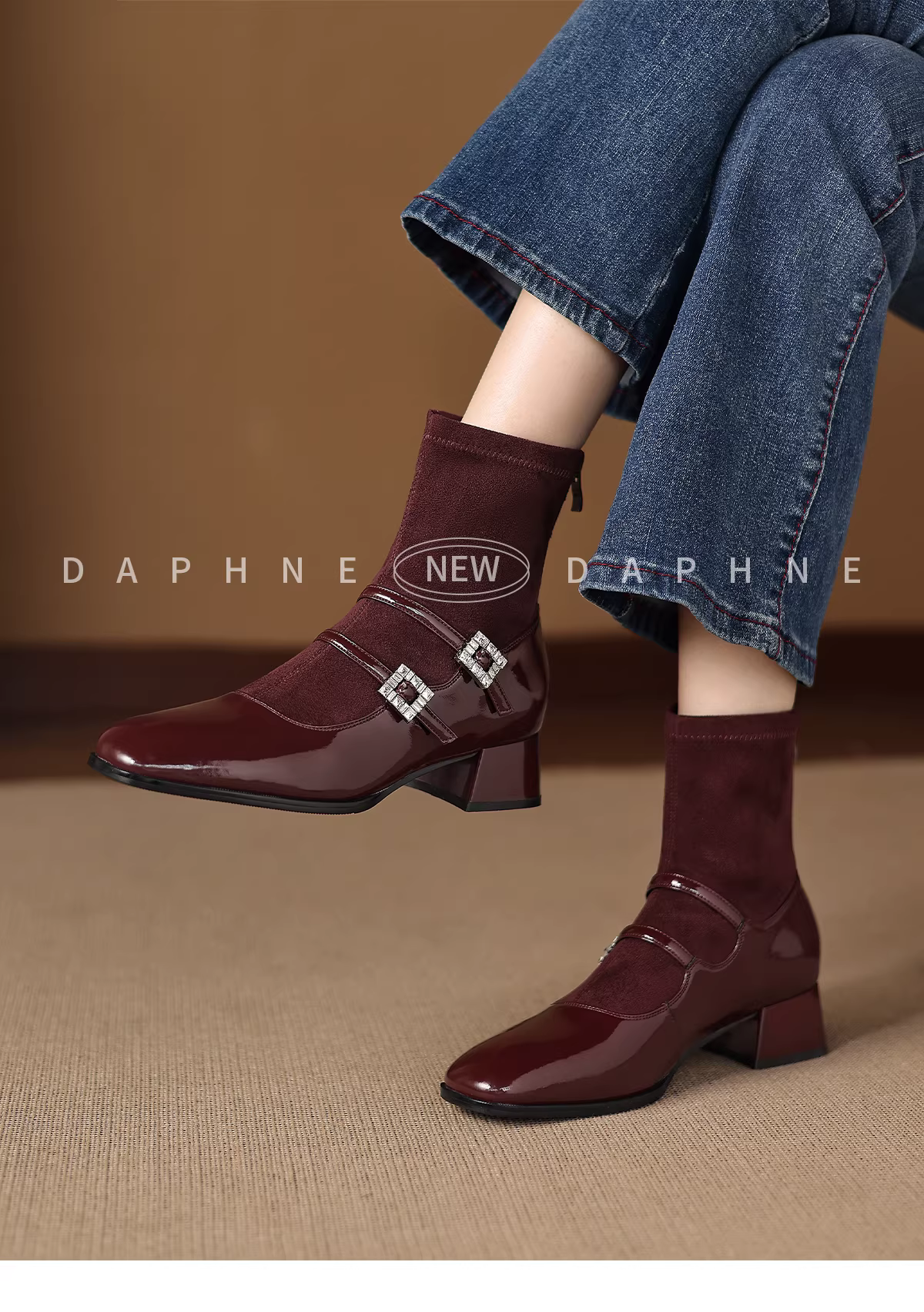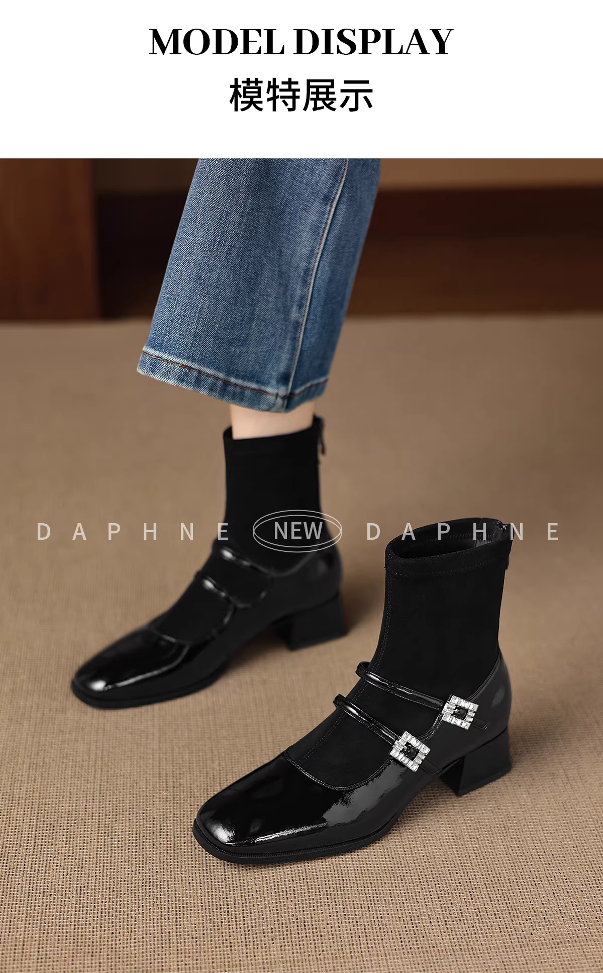 - Giày bốt cao gót ngắn Daphne có lớp lót lông cừu, giày bốt ôm sát dành cho nữ, giày bốt Mary Jane bằng da lộn đen mới năm 2025, giày bốt Martin.