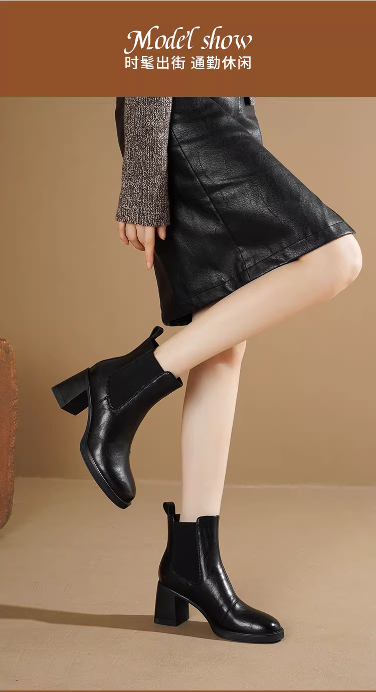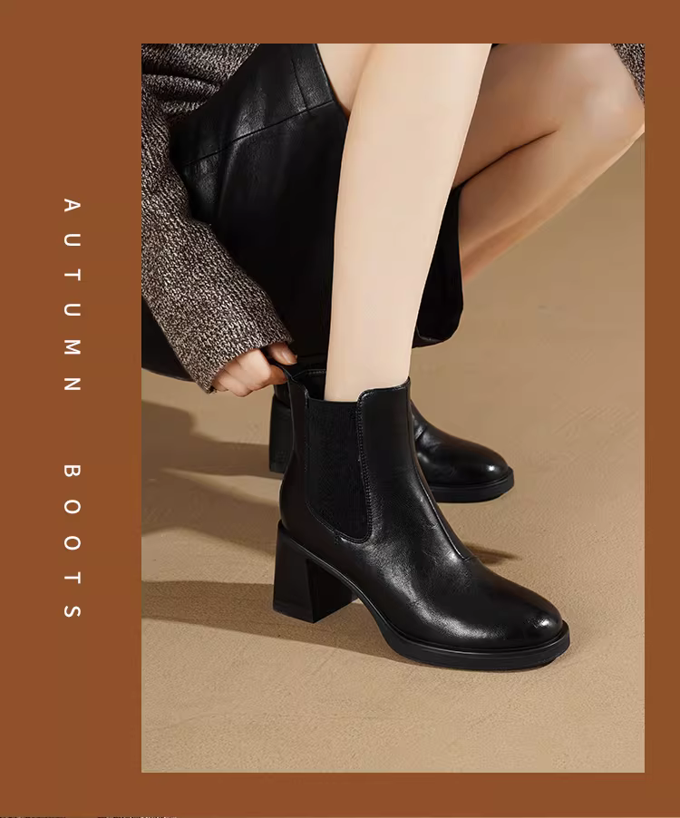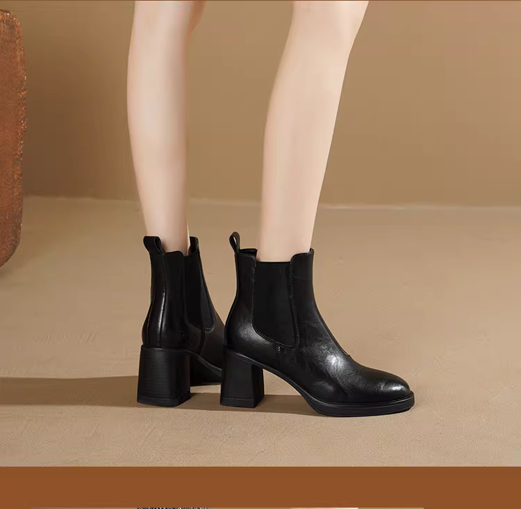 - Giày bốt cao gót ngắn Daphne dành cho nữ 2025 kiểu Pháp mới, bốt cổ chân, bốt mẹ, bốt Chelsea đen ôm sát nữ