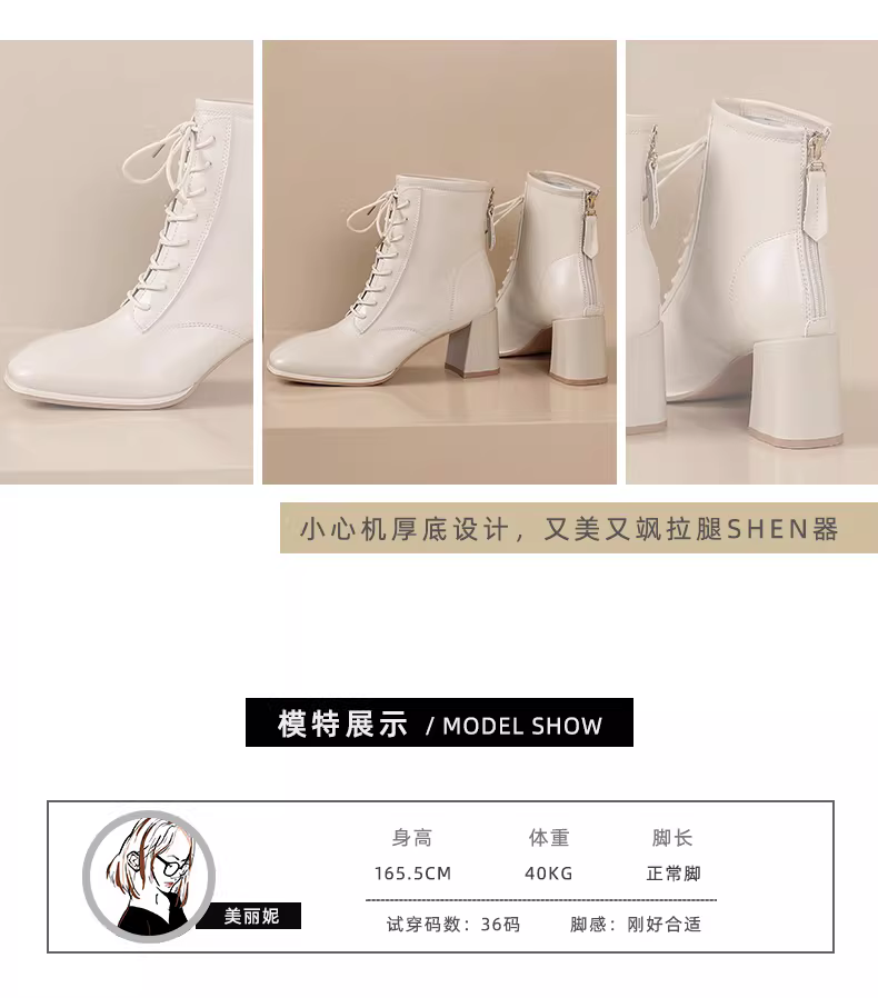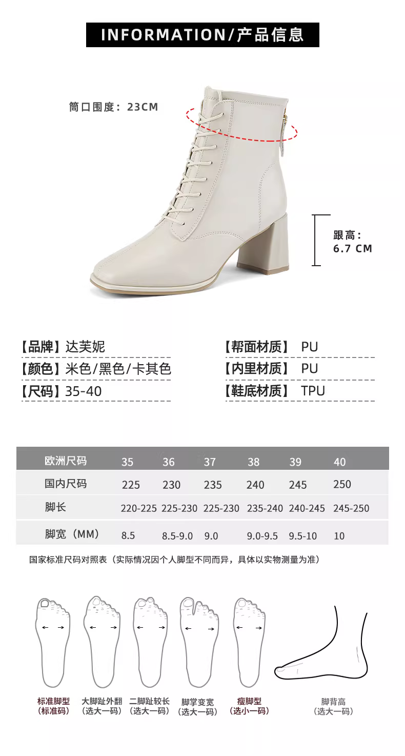 - Giày bốt cao gót ngắn Daphne dành cho nữ, bốt Martin trắng đa năng thời trang thu đông, bốt mũi vuông, giày nữ, bốt cao đến mắt cá chân.