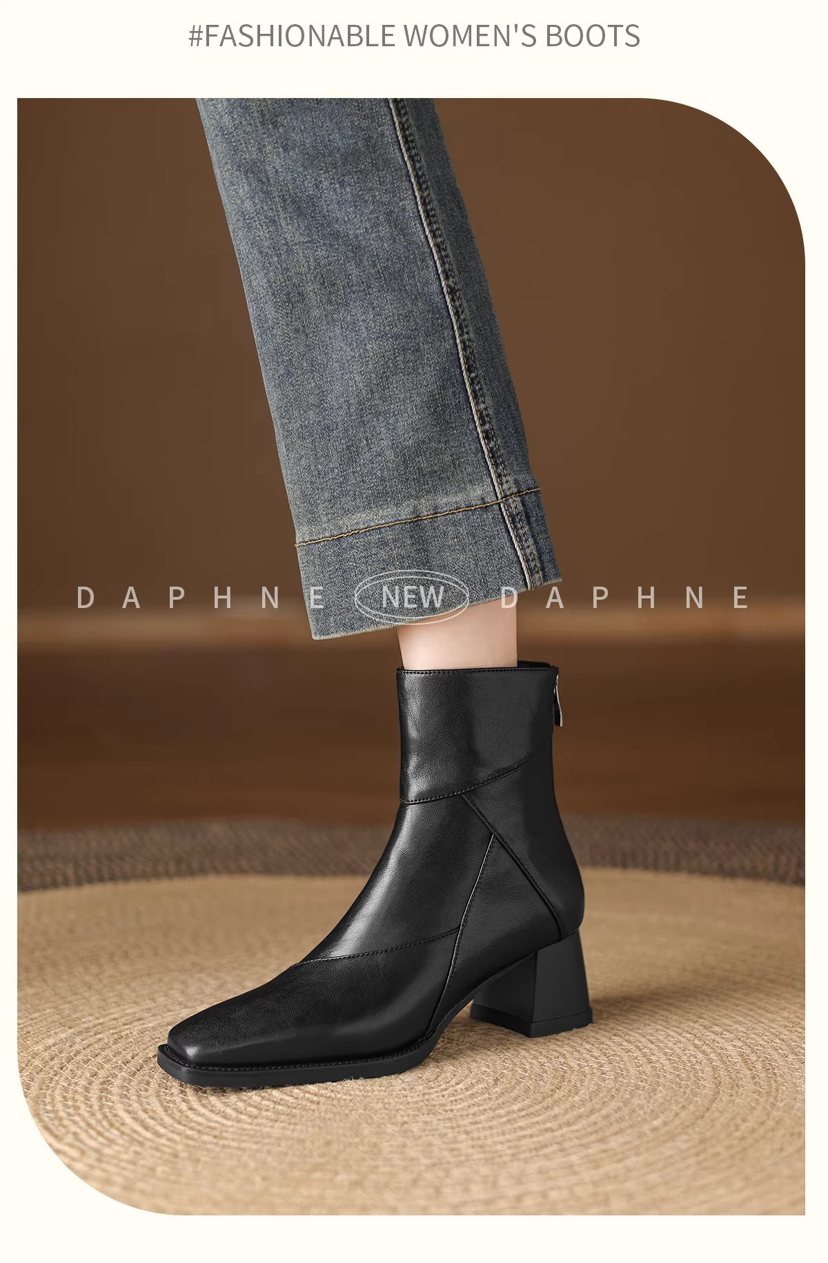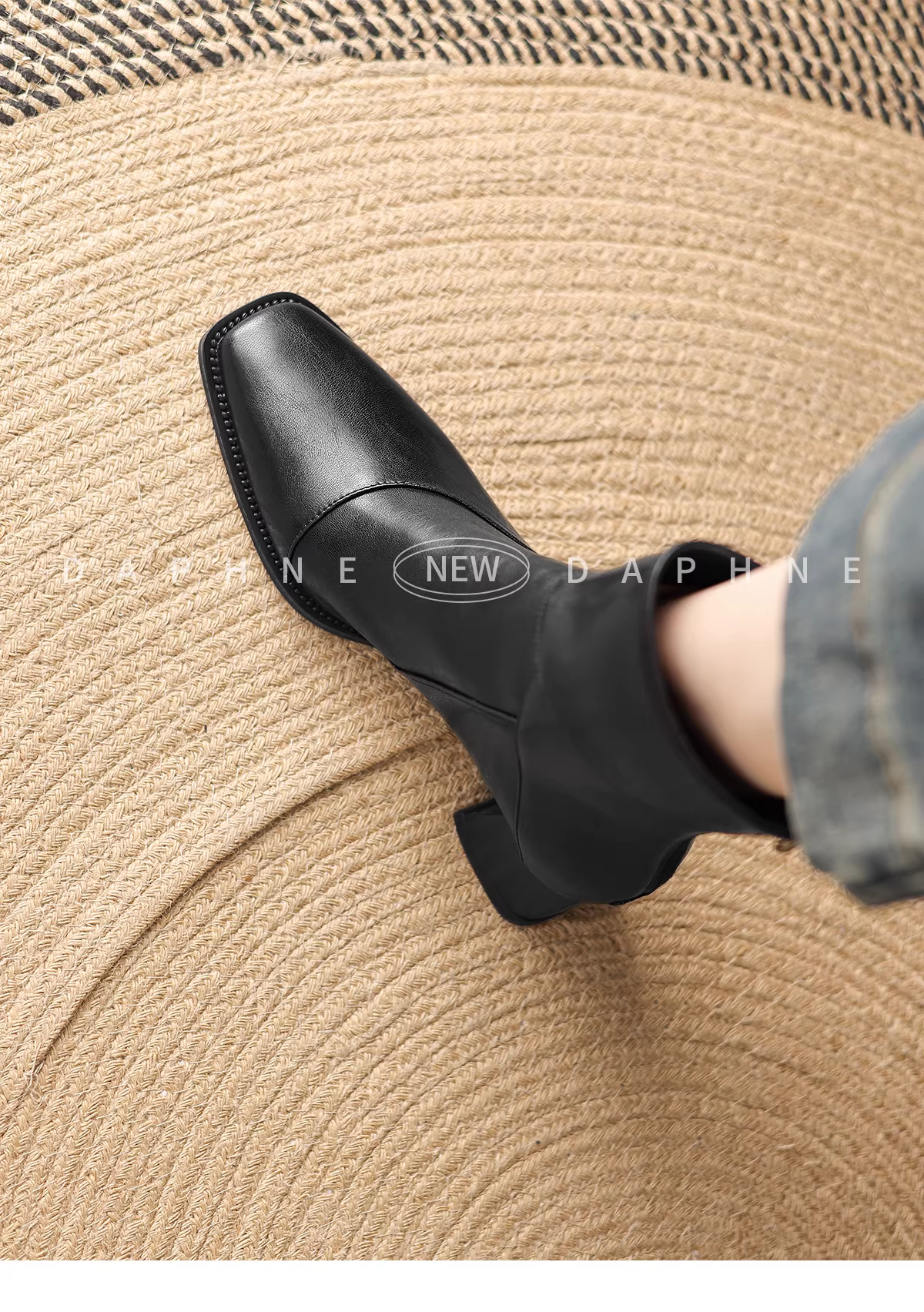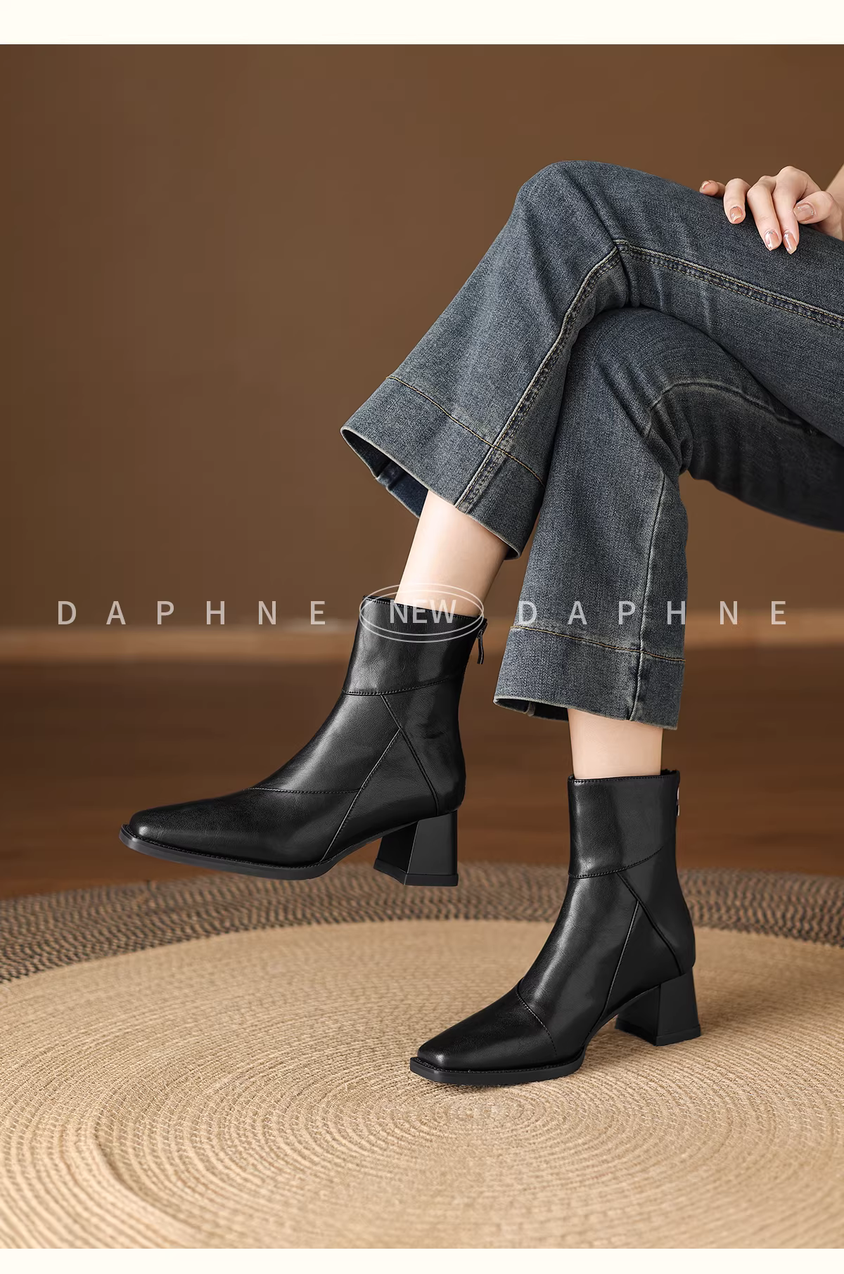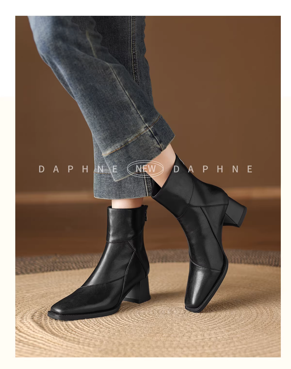 - Giày bốt cao gót ngắn Daphne dành cho nữ kiểu mới 2025, gót thô, kiểu Chelsea, giày bốt Martin nữ, mùa thu đông, màu đen, kiểu ôm sát.
