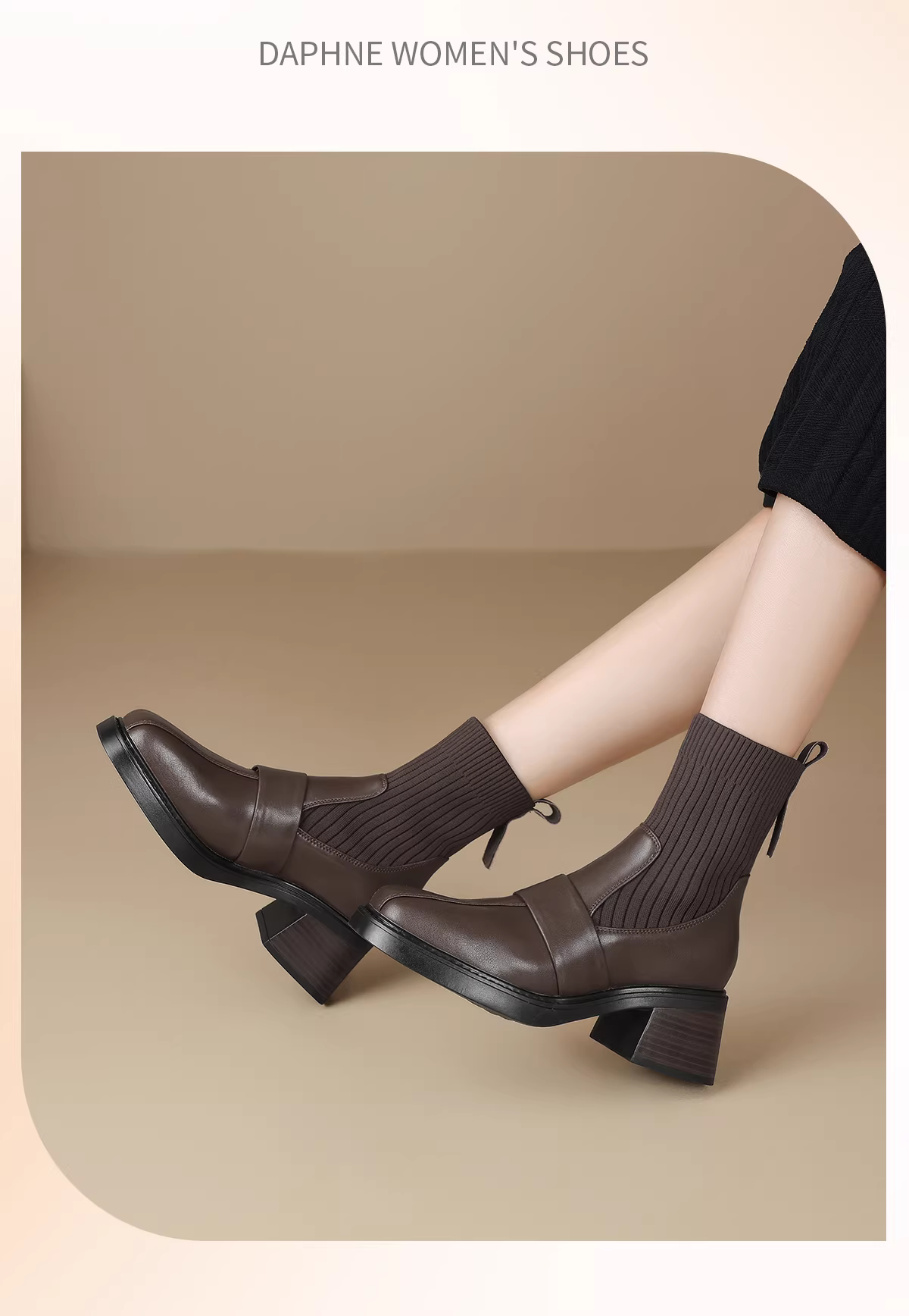 - Giày bốt cao gót ngắn Daphne dành cho nữ, mẫu mới mùa đông 2025, kiểu dáng ôm sát, giày da, bốt Chelsea lót lông, bốt Martin.