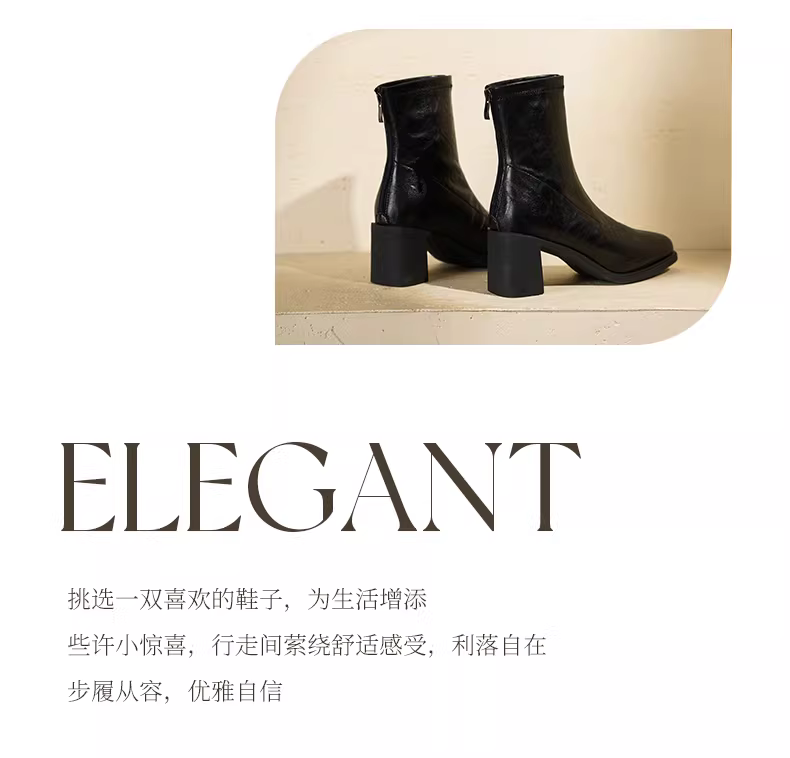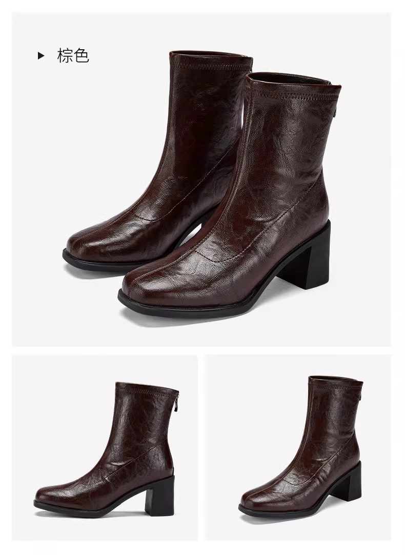 - Giày bốt cao gót ngắn Daphne dành cho nữ, mẫu mới thu đông 2025, màu đen, kiểu Martin, ôm chân, đa năng, gót dày.