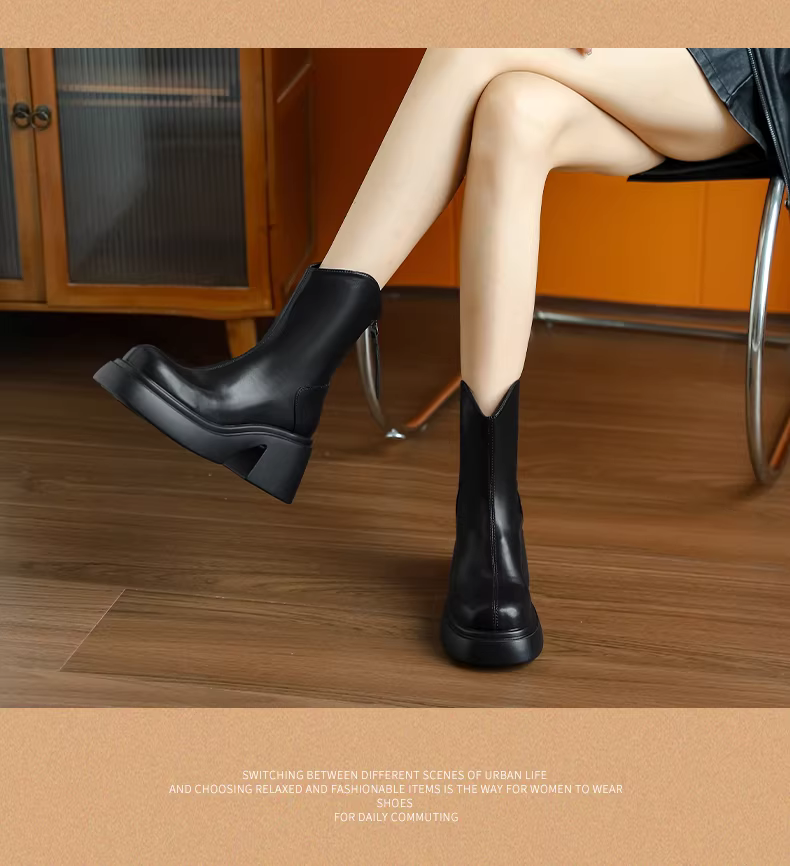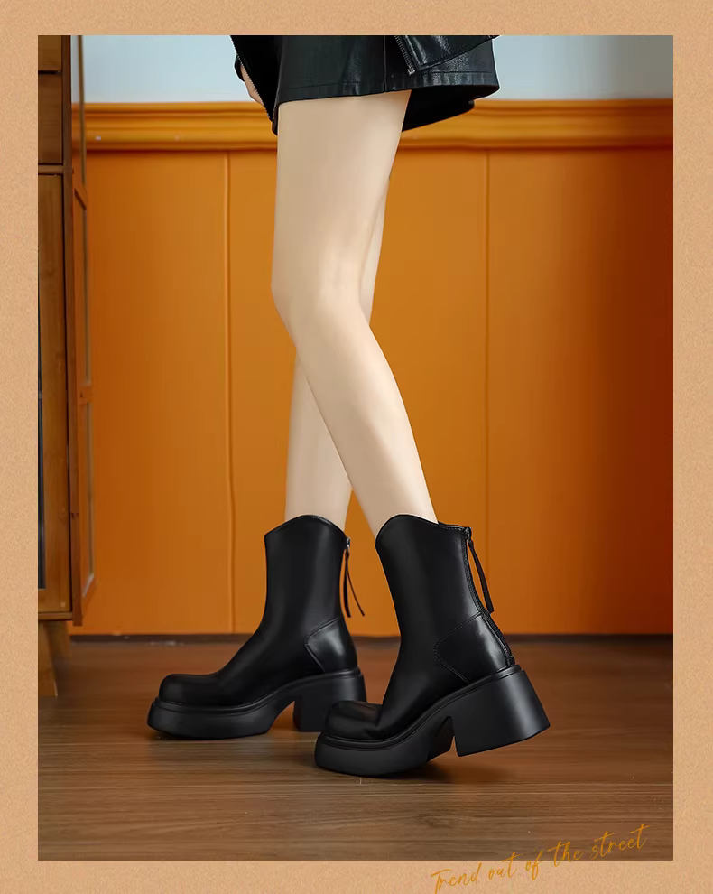 - Giày bốt cao gót ngắn Daphne dành cho nữ phong cách mùa thu 2025 Giày bốt dáng ôm cổ chữ V Giày bốt đơn Giày bốt Martin Giày bốt đế dày phổ biến dành cho nữ