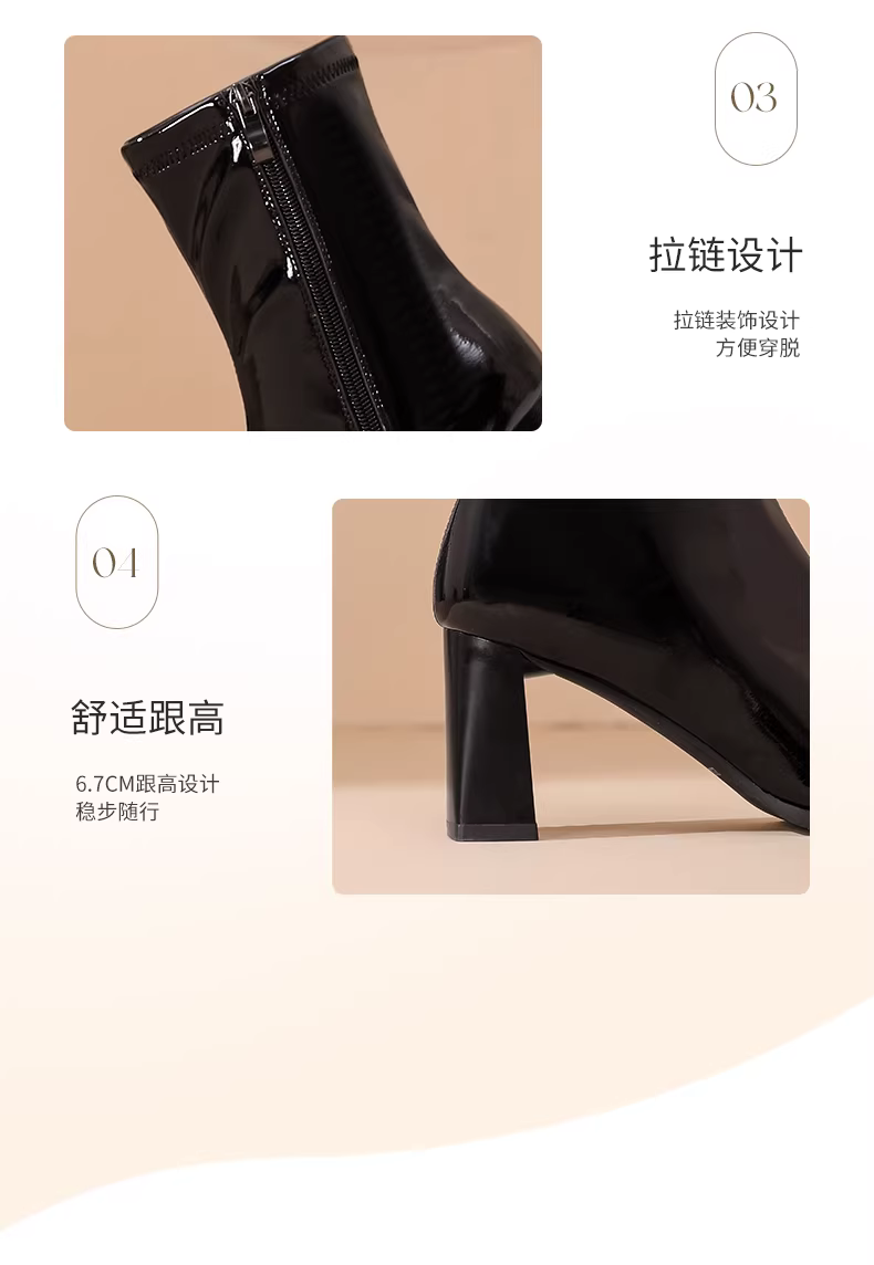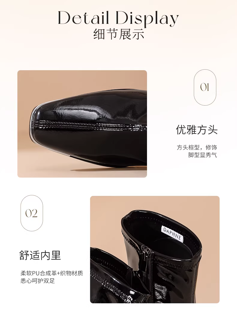 - Giày bốt cao gót ngắn Daphne dành cho nữ Thu Đông 2024, giày nữ mới kiểu Pháp, bốt ôm sát màu đen, quyến rũ, gót dày cao.