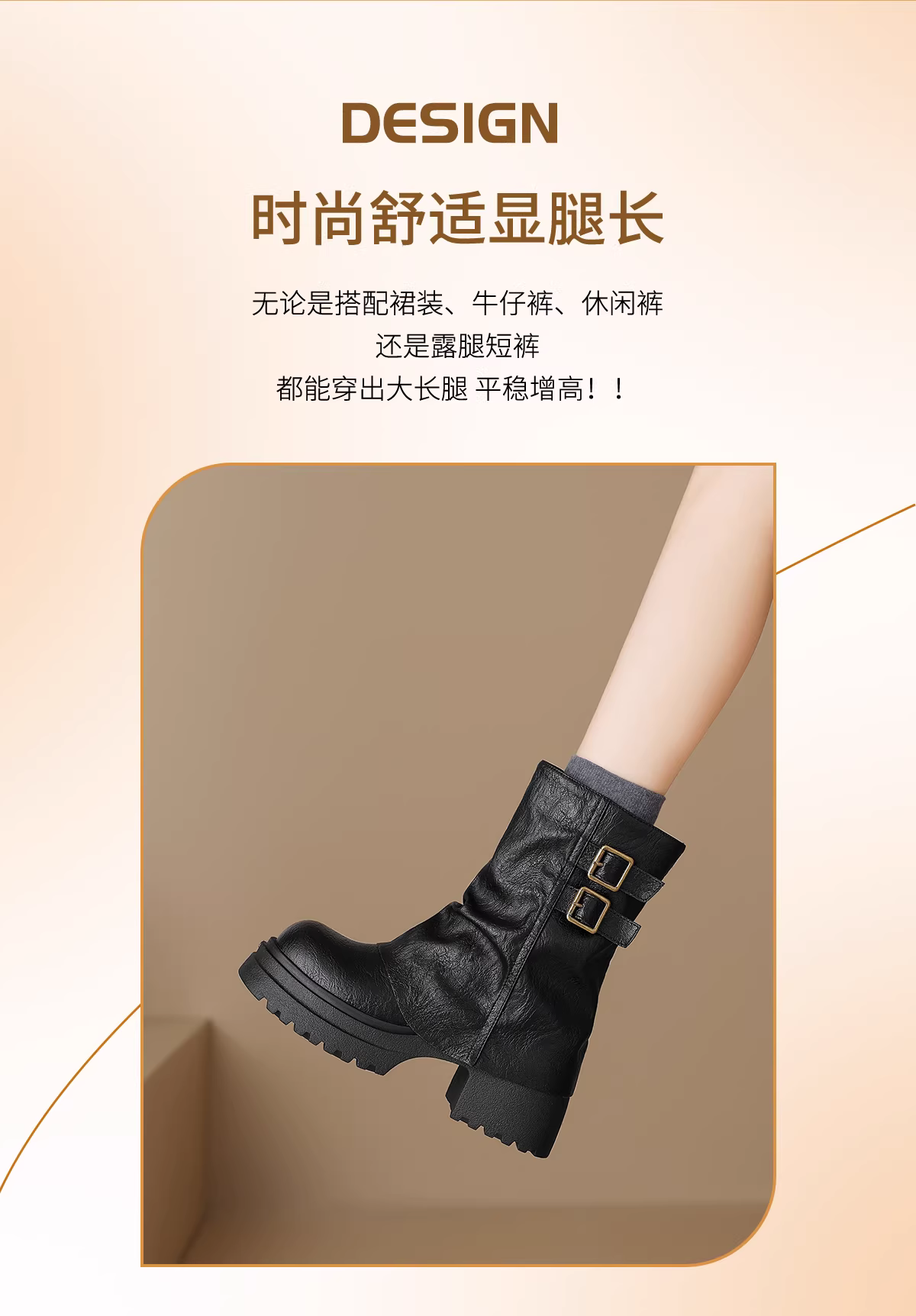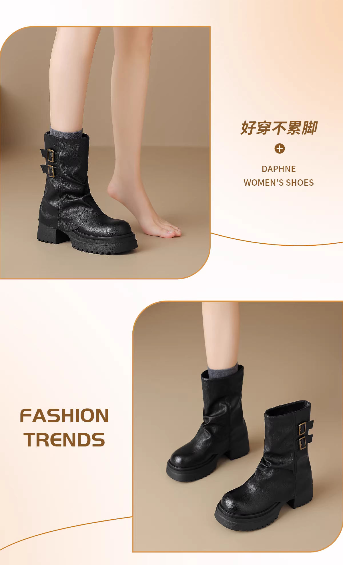 - Giày bốt cao gót ngắn màu đen Daphne dành cho nữ, kiểu dáng mùa xuân mới 2025, kiểu bốt quần nữ mùa xuân thu, bốt lười, bốt Martin
