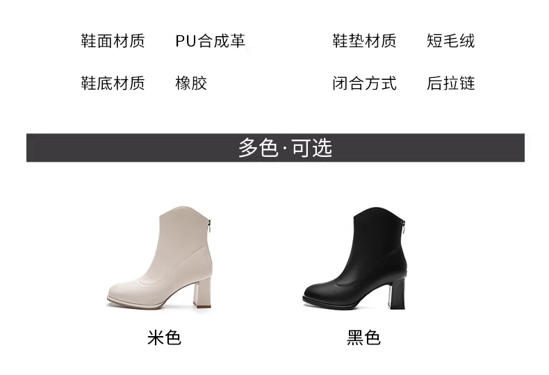 - Giày bốt cao gót ngắn màu trắng Dadong dành cho nữ, mẫu mới thu đông 2025, lót lông, mũi vuông, kiểu Chelsea, kiểu Pháp, cổ ngắn