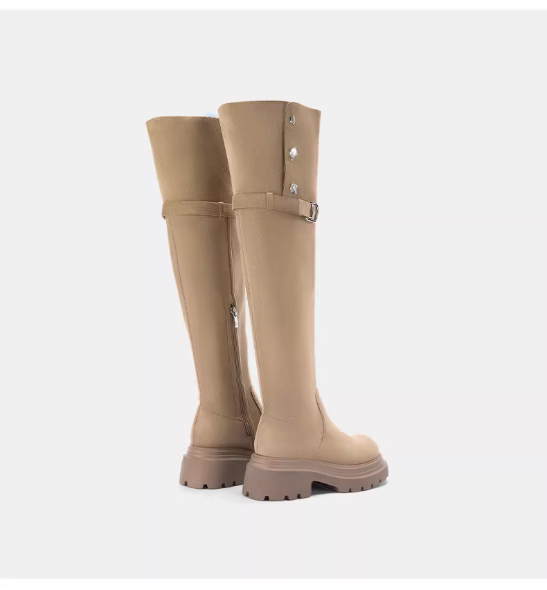 - Giày bốt cao quá đầu gối Daphne dành cho nữ 2025 Giày bốt mùa thu đông mới Giày bốt đế dày Giày bốt cao Giày bốt cao cổ lót lông cừu dành cho nữ