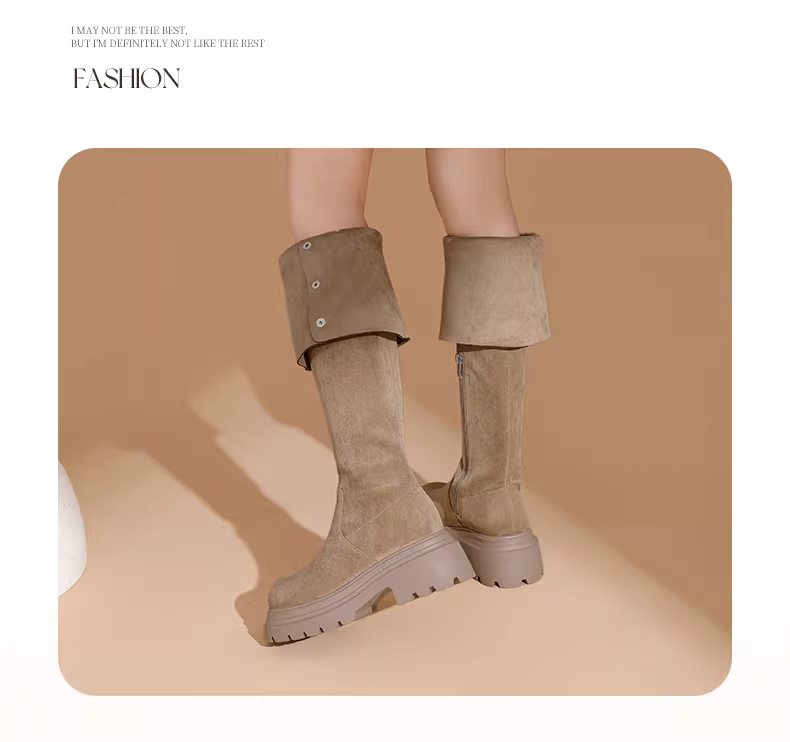 - Giày bốt cao quá đầu gối Daphne dành cho nữ 2025, mẫu mới thu đông, đế dày, bốt dài, kiểu hai mang, bốt cưỡi ngựa, màu nâu.