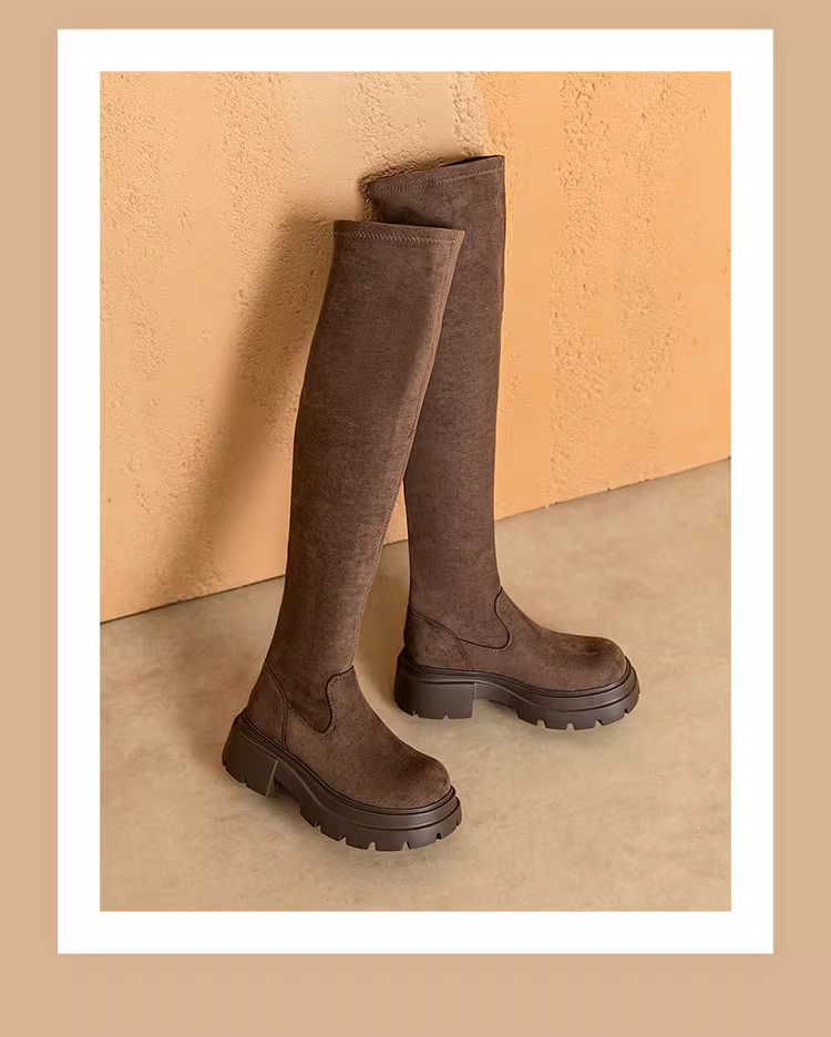 Giày bốt cao quá gối Dadong dành cho nữ 2025, mẫu mới thu đông, kiểu ôm sát, chất liệu da lộn, đế dày, dành cho người nhỏ nhắn.