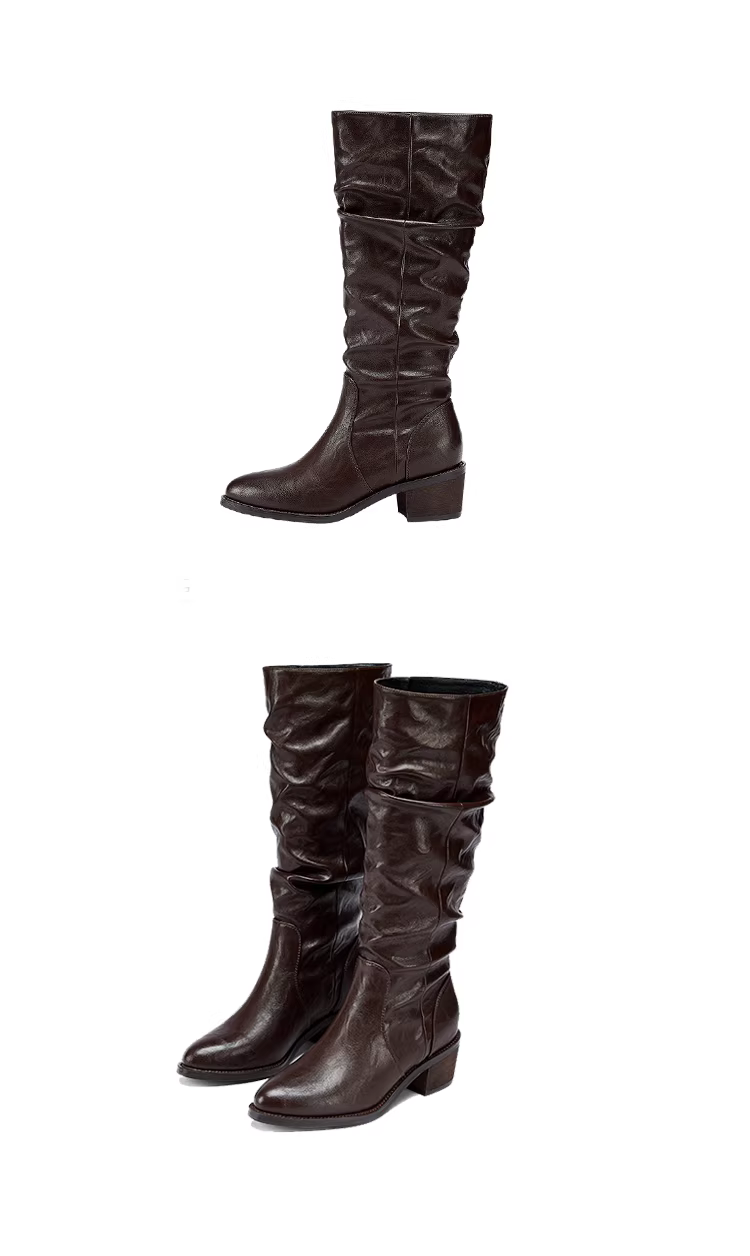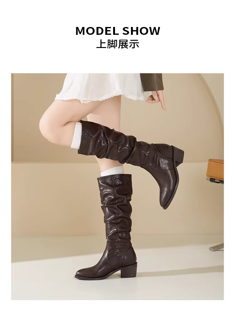 - Giày bốt cao quá gối Daphne dành cho nữ, mẫu thu đông 2025, kiểu dáng thon gọn, xếp ly, mũi nhọn, kiểu dáng cao cổ.