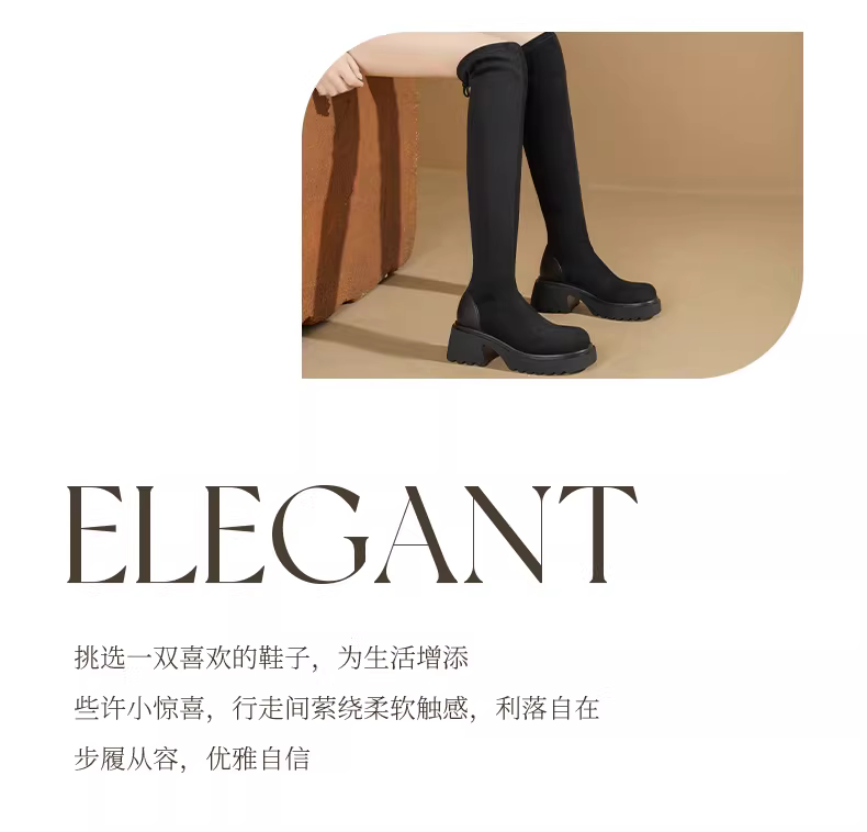 Giày bốt cao quá gối đế dày Daphne nữ thu đông 2025 kiểu dáng mới tôn dáng, tăng chiều cao, kiểu retro, chất liệu thun co giãn