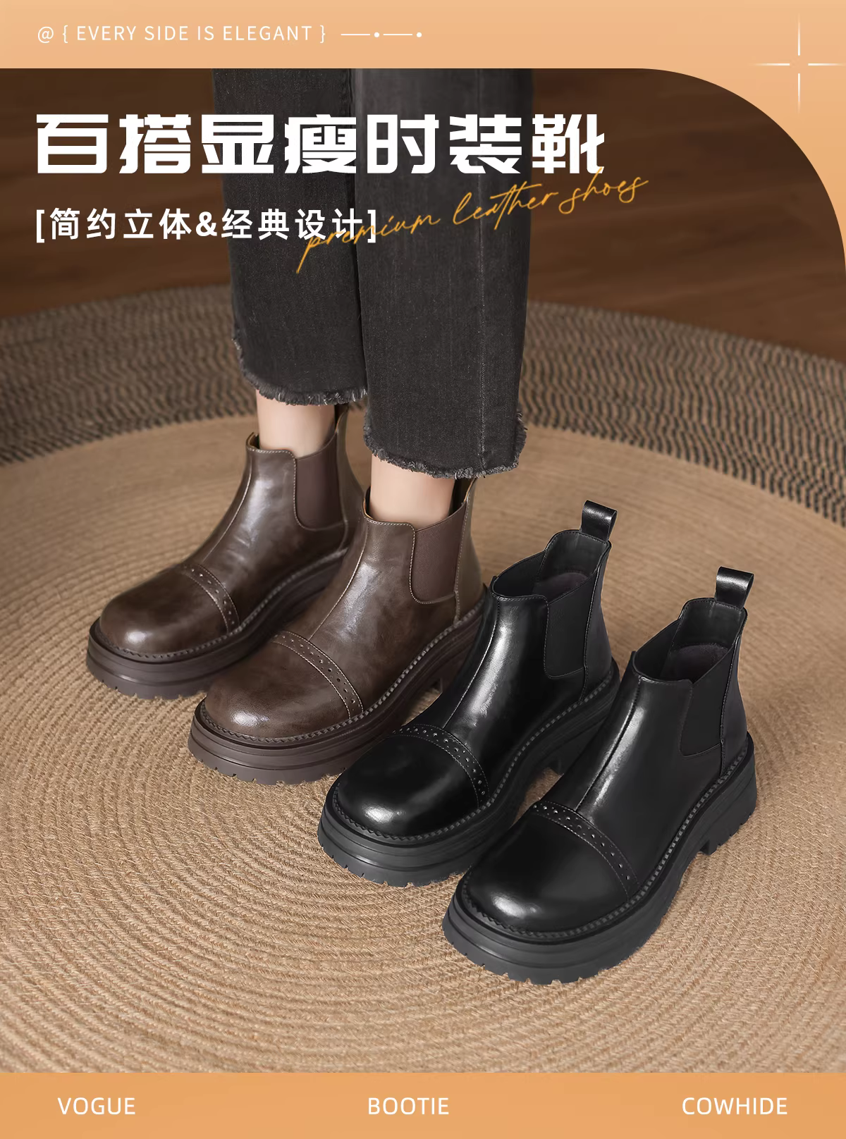 Giày bốt Chelsea lót lông Daphne dành cho nữ, mẫu mới 2025, kiểu dáng ôm sát mắt cá chân, mùa thu đông, phong cách Anh, kiểu Martin.