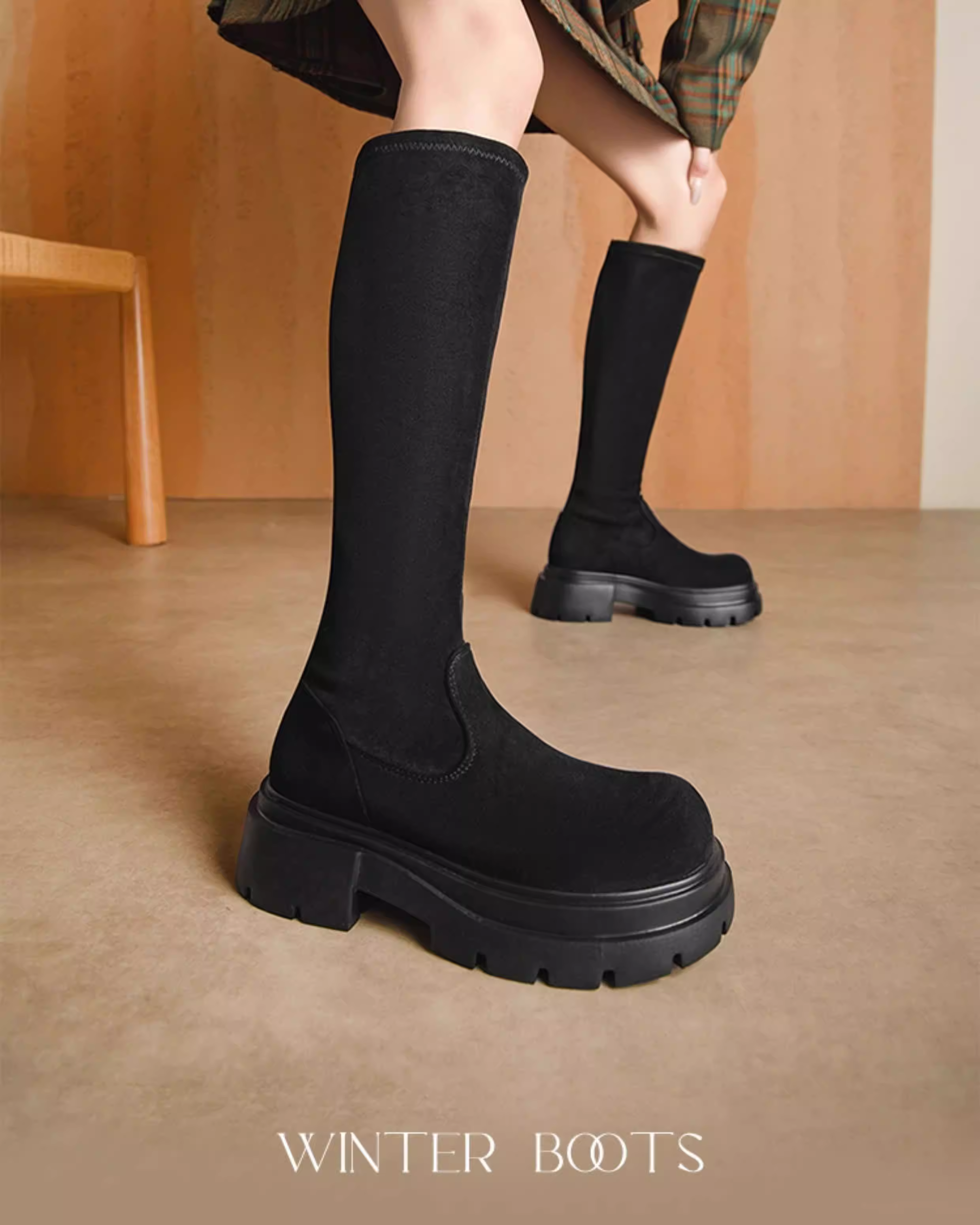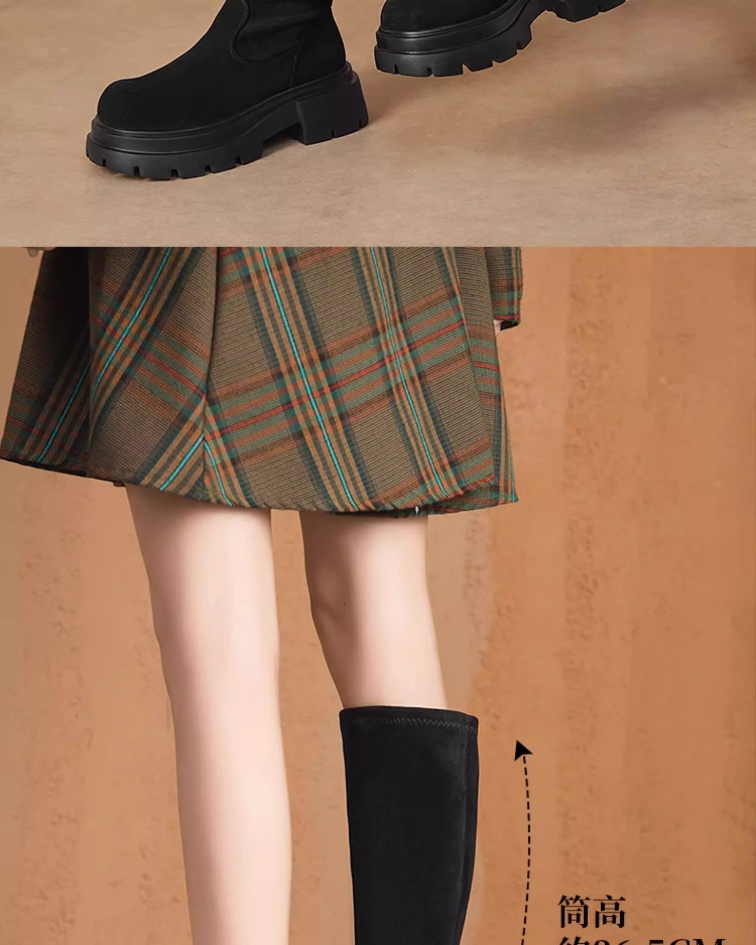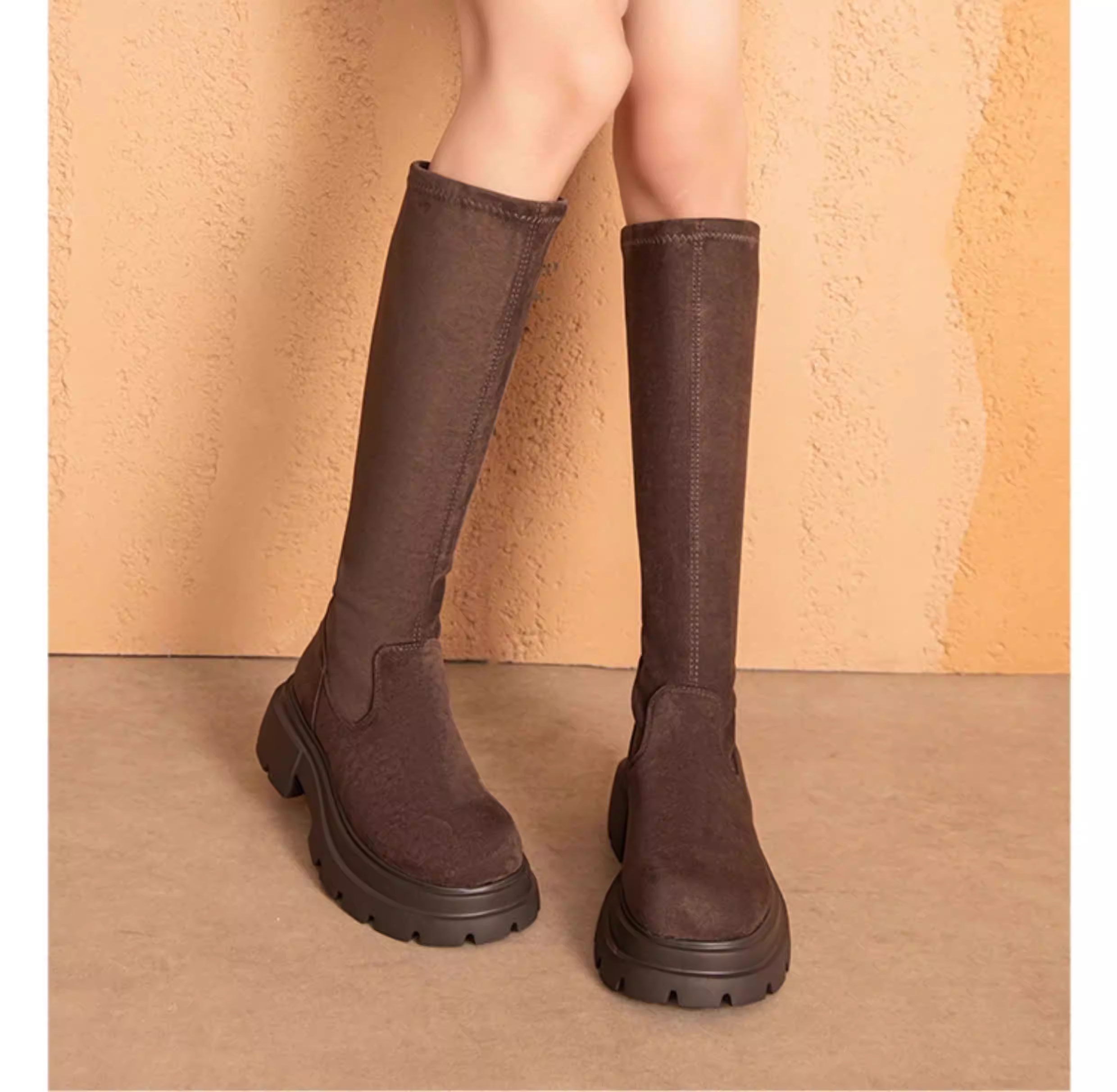 - Giày bốt co giãn giảm béo Dadong dành cho nữ 2025 mới mùa thu đông giày bốt màu nâu bốt dài bốt cao bốt đế dày bốt thon gọn