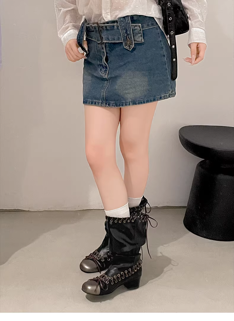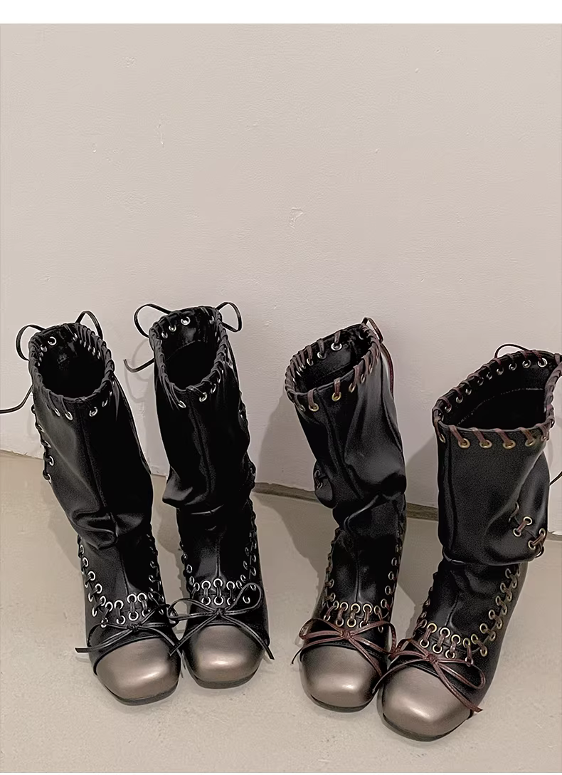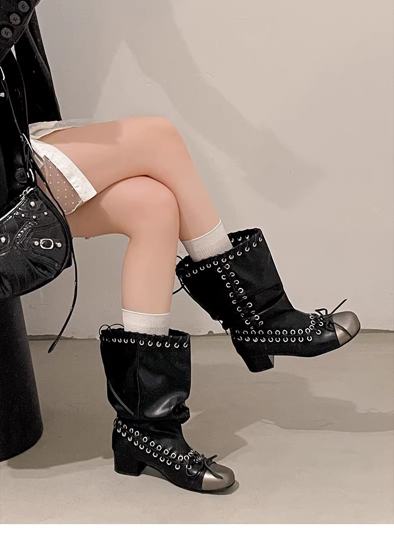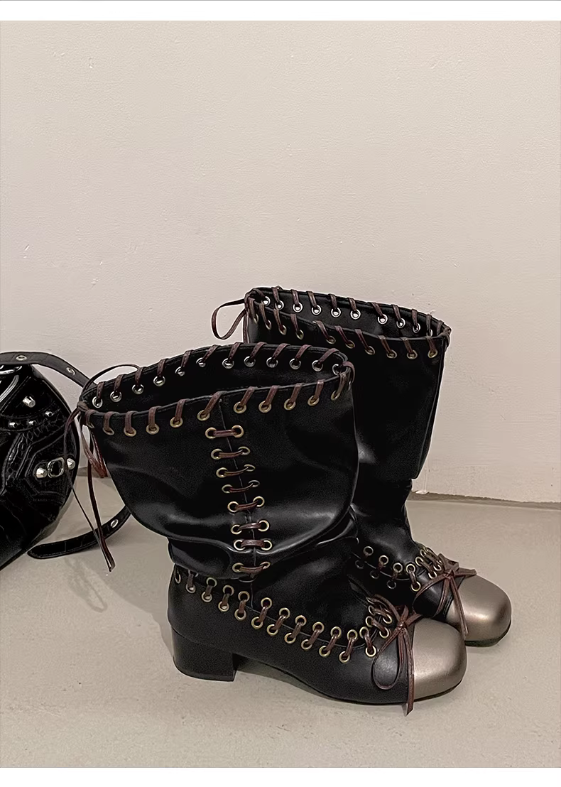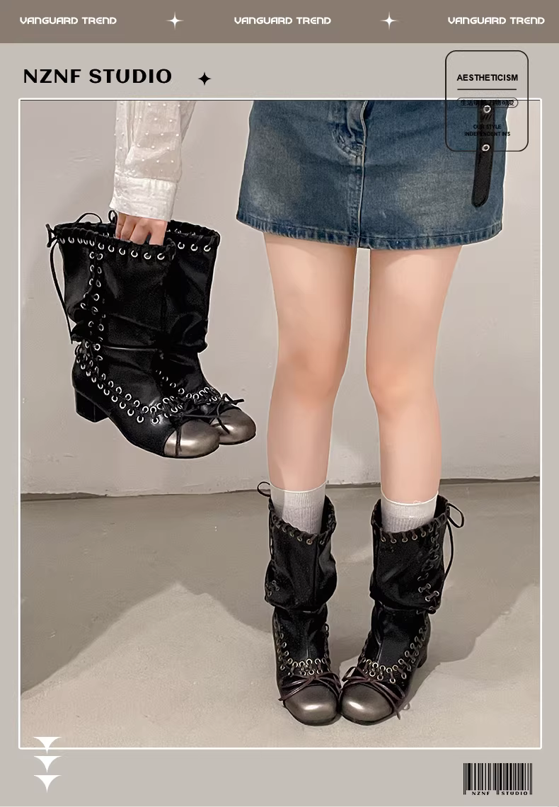 - Giày bốt cổ ngắn cao gót chunky retro đen dành cho nữ, mẫu mới thu đông 2025, đa năng, tăng chiều cao, kiểu dáng thời thượng.