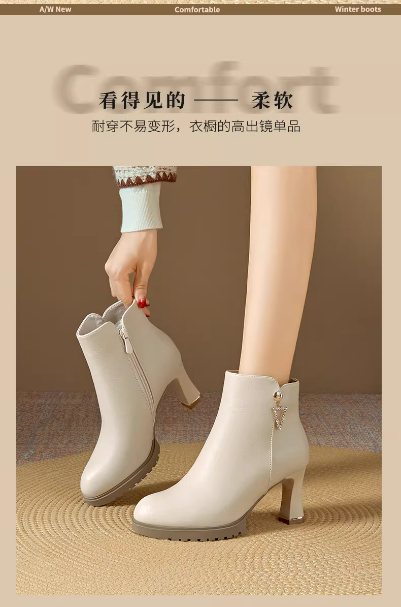 - Giày bốt cổ ngắn cao gót Dadong dành cho nữ 2025 mới mùa thu đông Giày đế dày đế dày chống thấm nước có lót lông Giày bốt nữ Chelsea Giày bốt thời trang