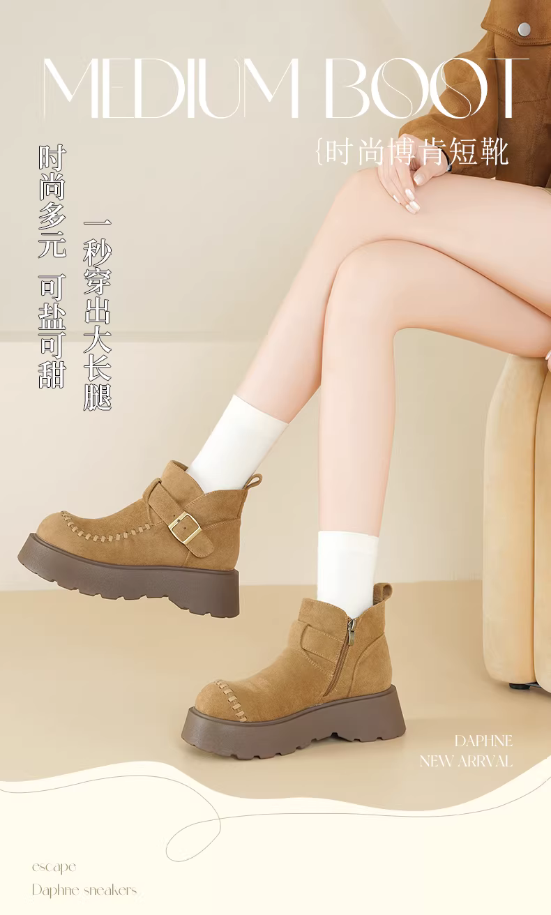 - Giày bốt cổ ngắn đế dày kiểu Birkenstock của Daphne dành cho nữ, mẫu mới thu đông 2025, kiểu cổ điển tăng chiều cao, giày Martin Melard siêu hot.