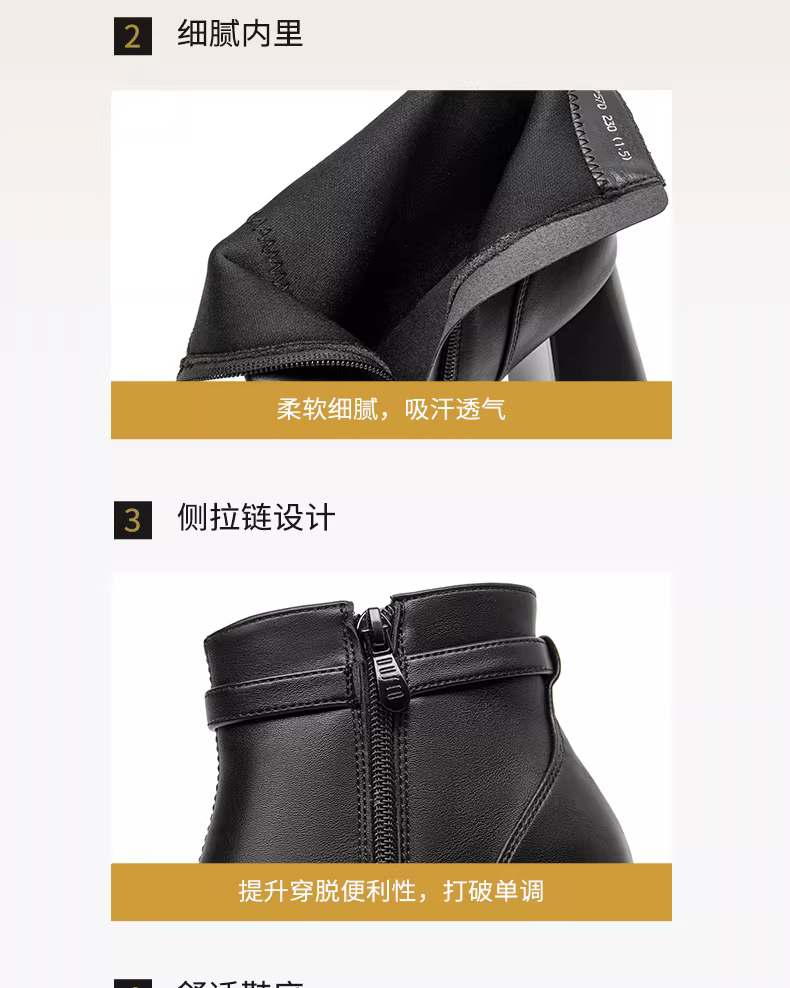- Giày bốt cổ ngắn đế thô màu đen Dadong dành cho nữ 2025 mới thu đông Giày bốt nữ Chelsea Giày cao gót Giày bốt thời trang Giày bốt dáng ôm