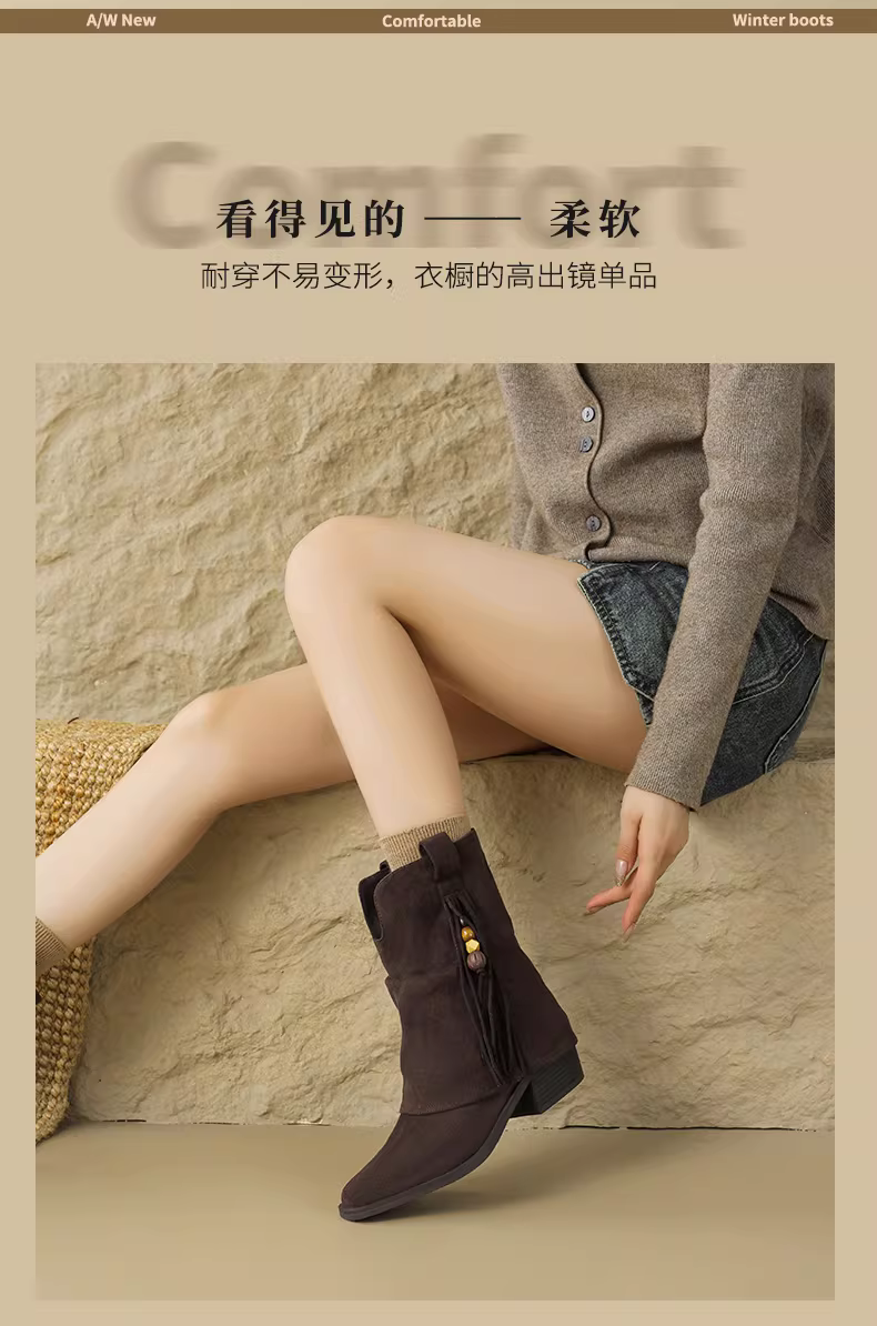 - Giày bốt cổ ngắn đế thô mũi nhọn Dadong dành cho nữ, mẫu mới thu đông 2025, màu nâu Melard, kiểu dáng lười, kiểu Chelsea.