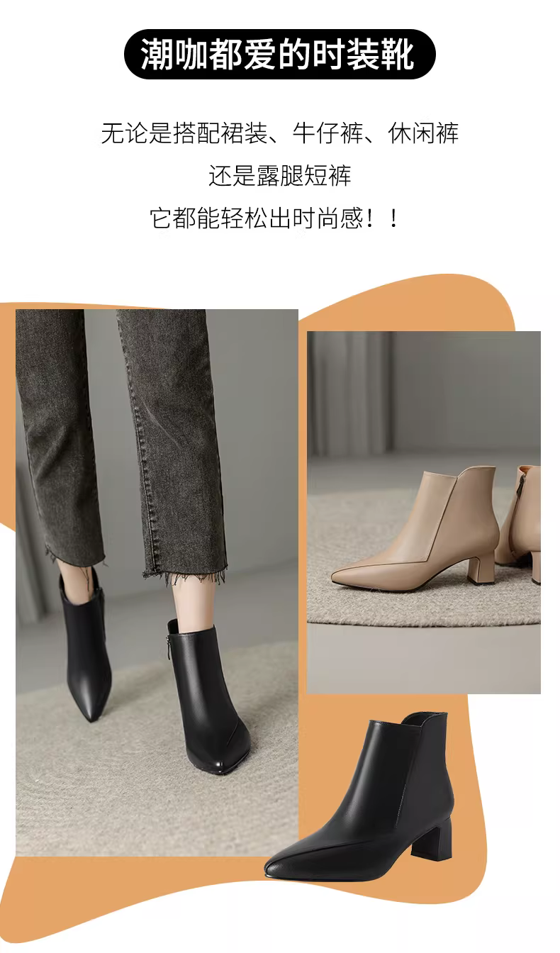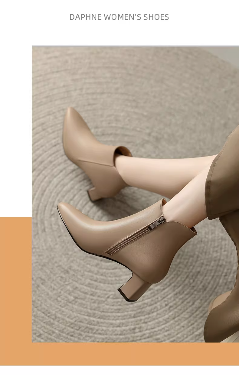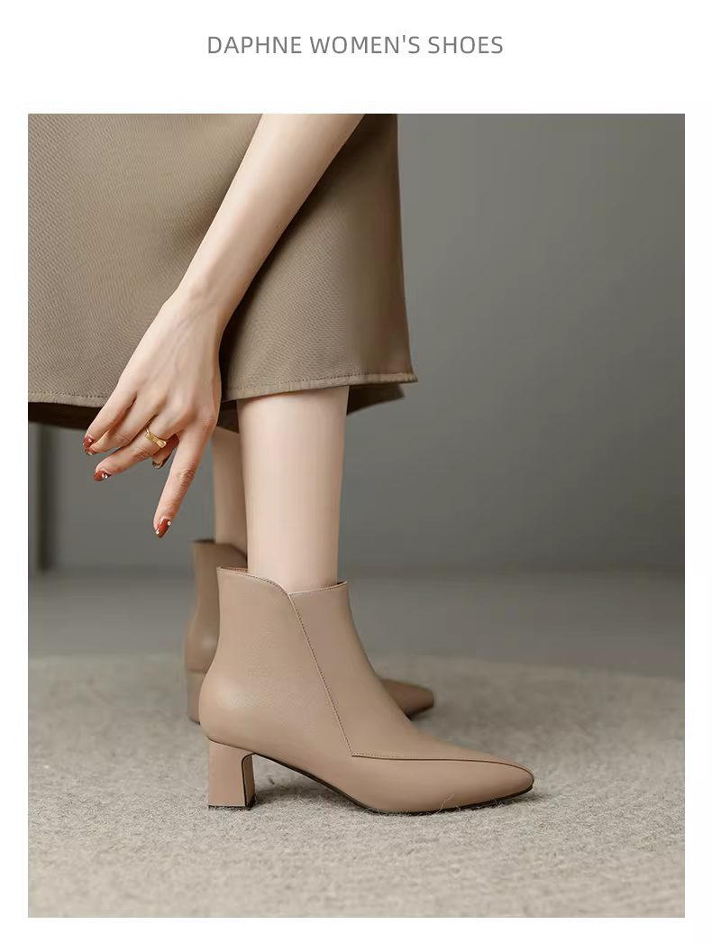 - Giày bốt cổ ngắn gót thô Daphne dành cho nữ, mẫu mới thu đông 2025, giày cao gót kiểu mẹ, bốt cổ ngắn đi làm, màu đen, kiểu Martin
