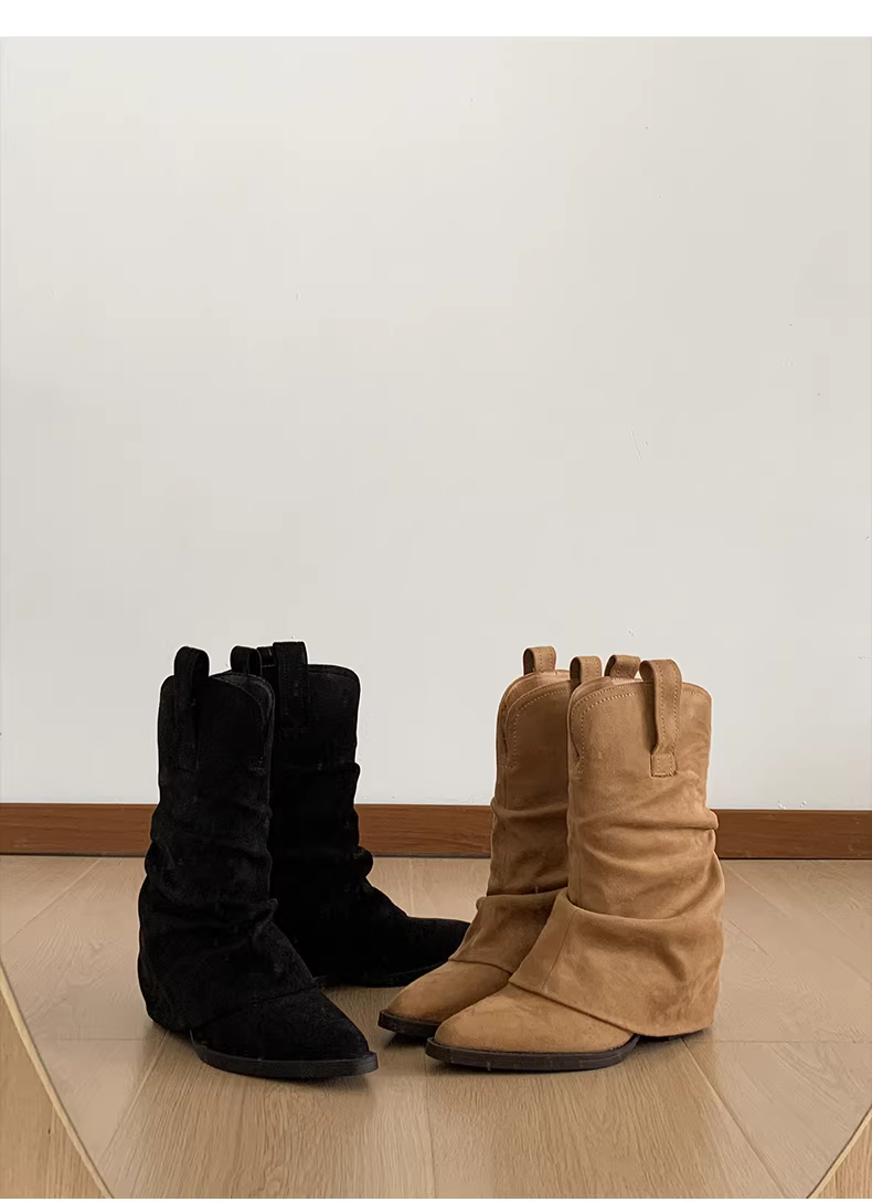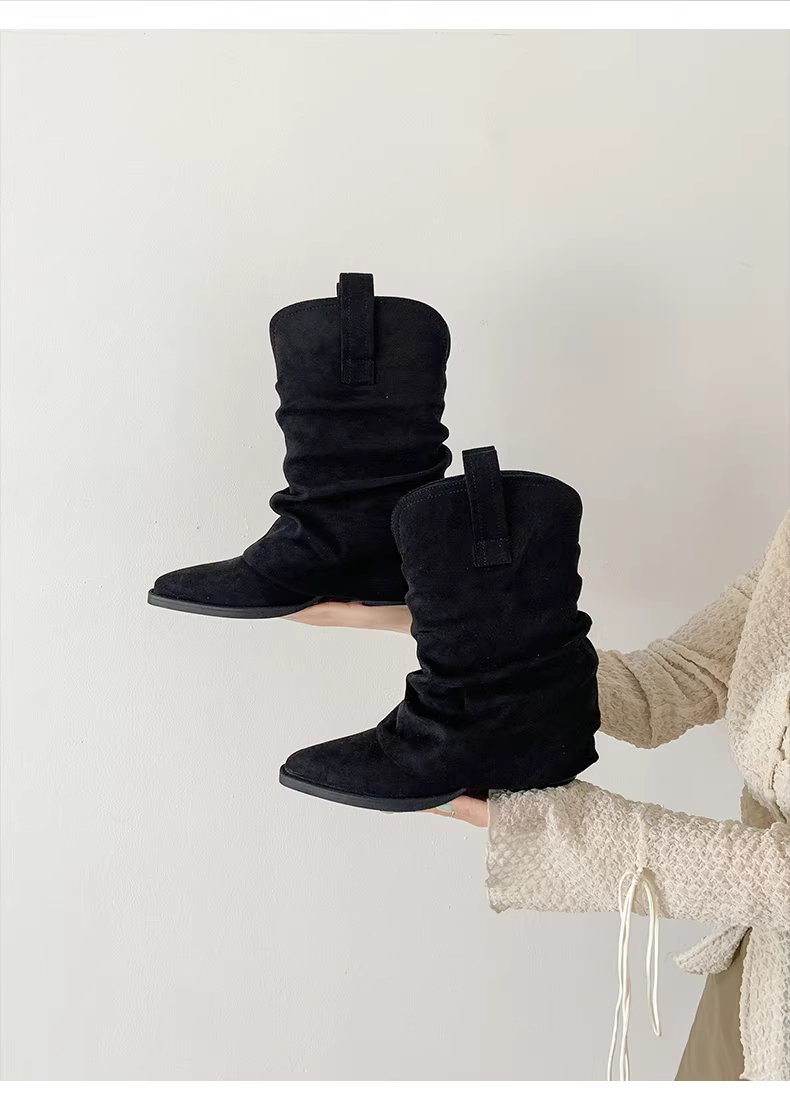 - Giày bốt cổ ngắn gót thô kiểu Melard retro miền Nam dành cho nữ, mẫu mới thu đông 2025, mũi nhọn, đế dày, phối cùng chân váy