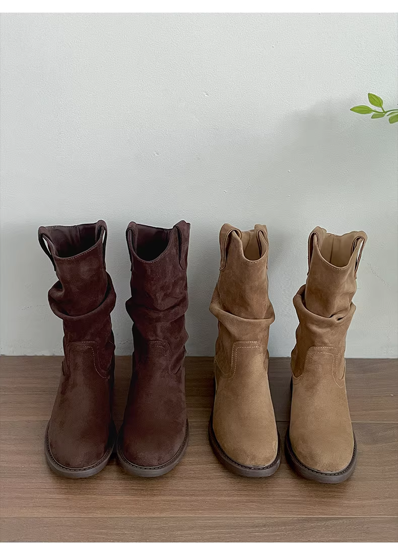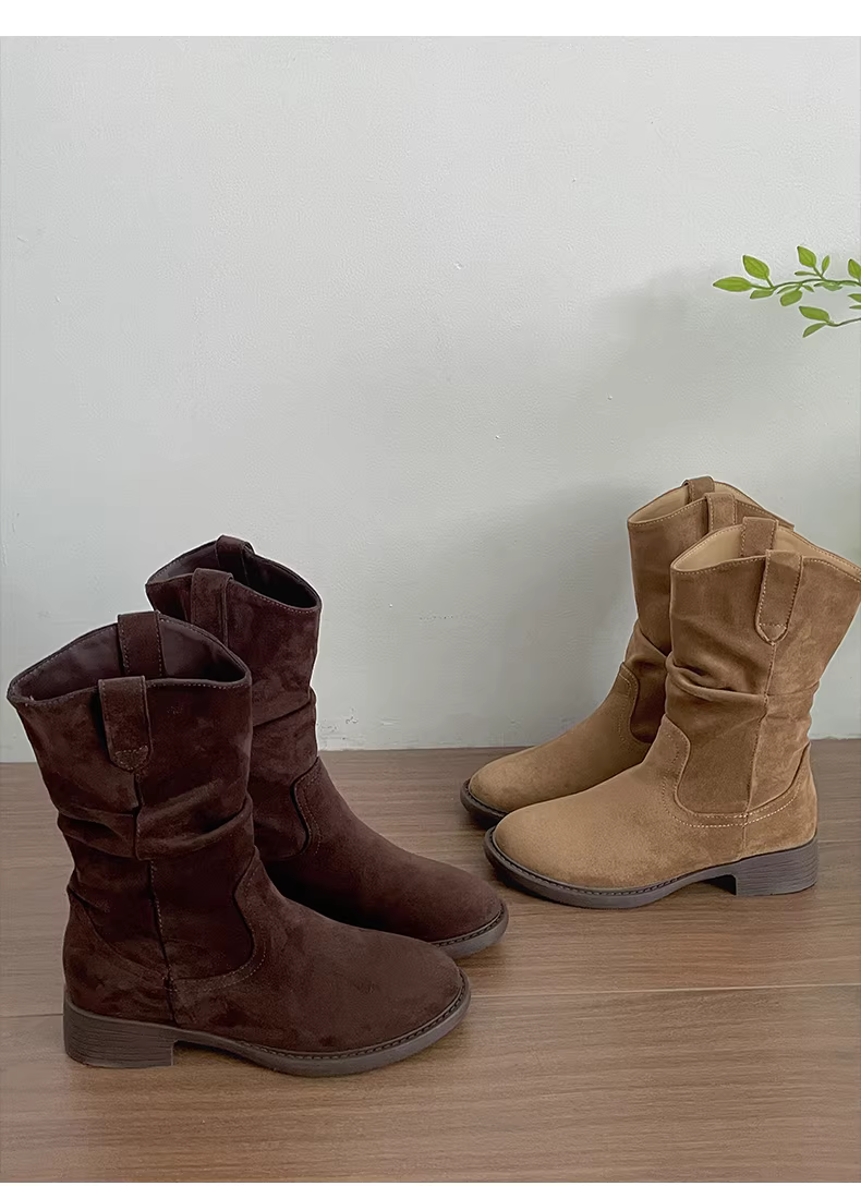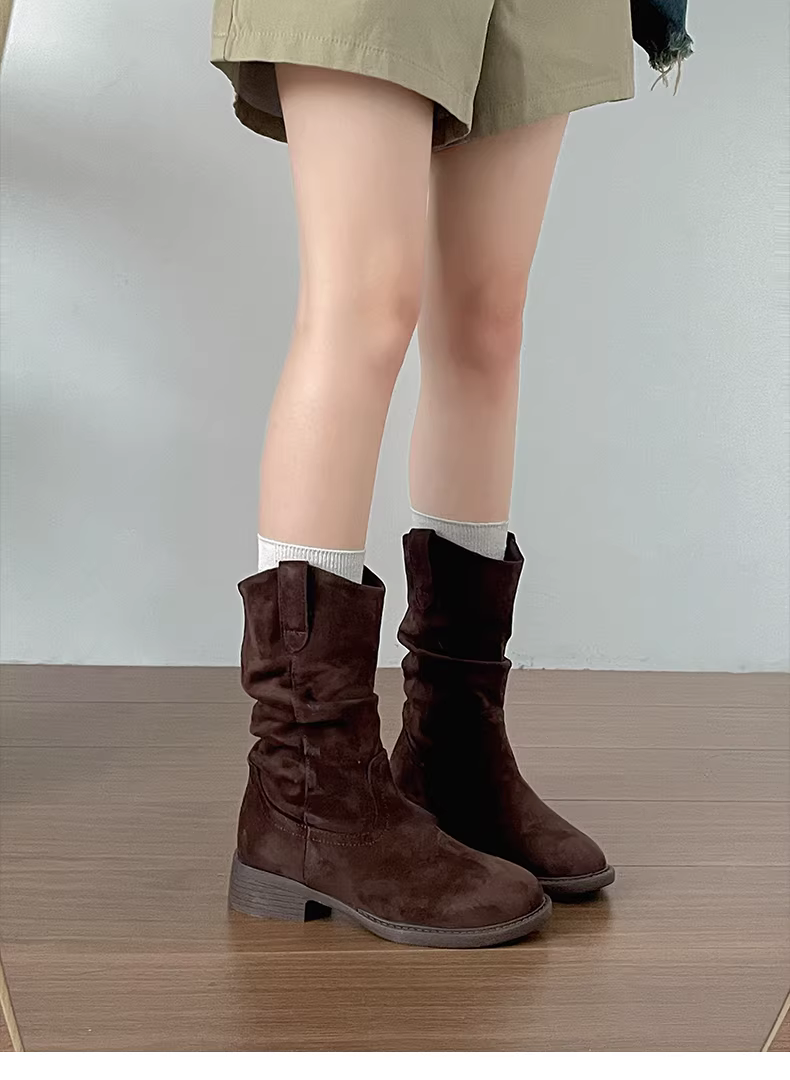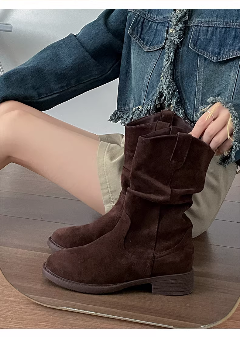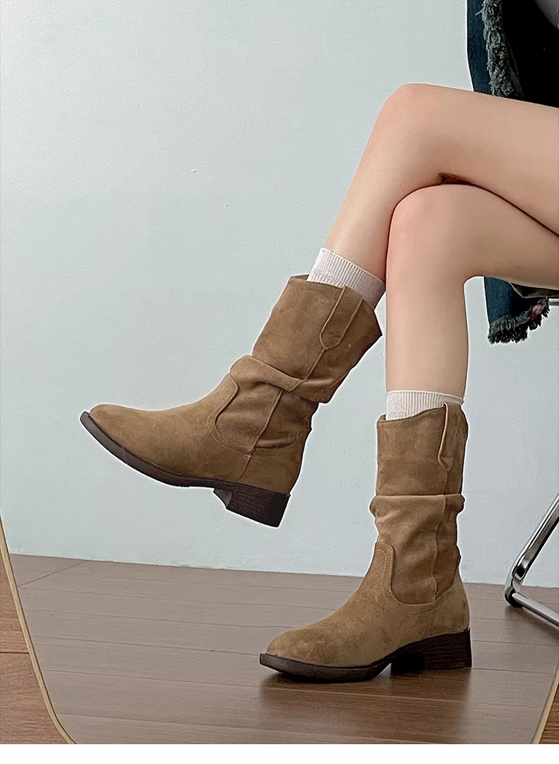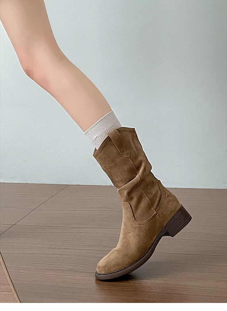 - Giày bốt cổ ngắn gót thô kiểu retro Nanzai Nanfang Melard dành cho nữ, mẫu mới thu đông 2025, kiểu cao bồi miền Tây