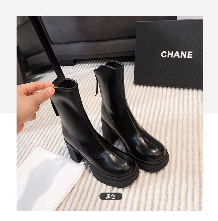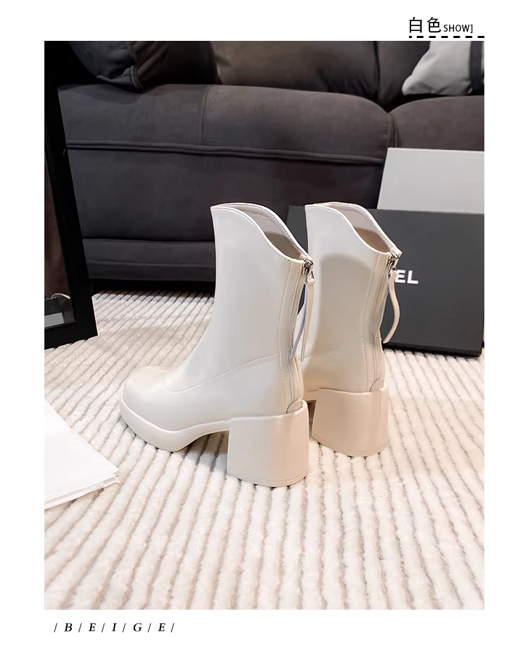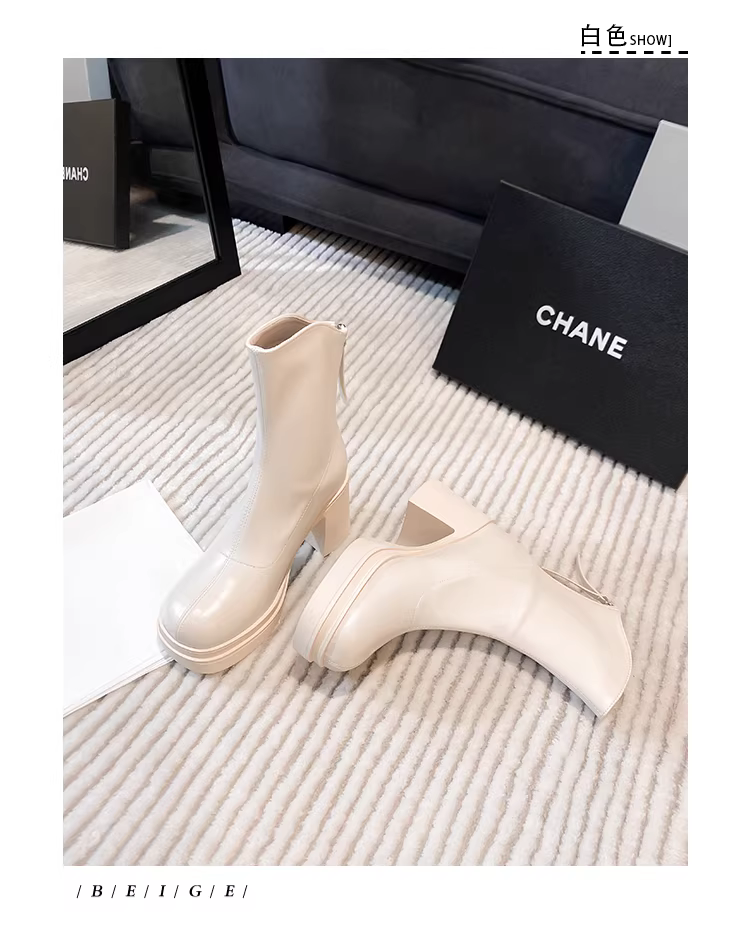 - Giày bốt cổ ngắn màu trắng Pear Xiaoqi da thật đế dày tăng chiều cao đế chống thấm nước gót nhọn cao gót giày bốt mỏng dành cho nữ Giày bốt Martin