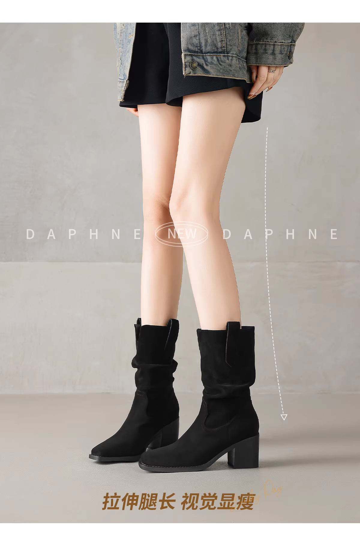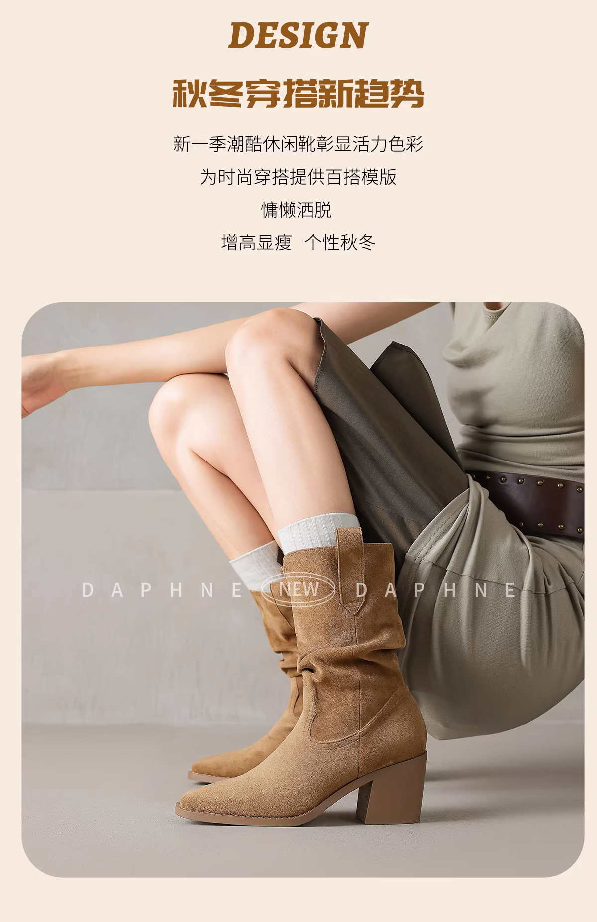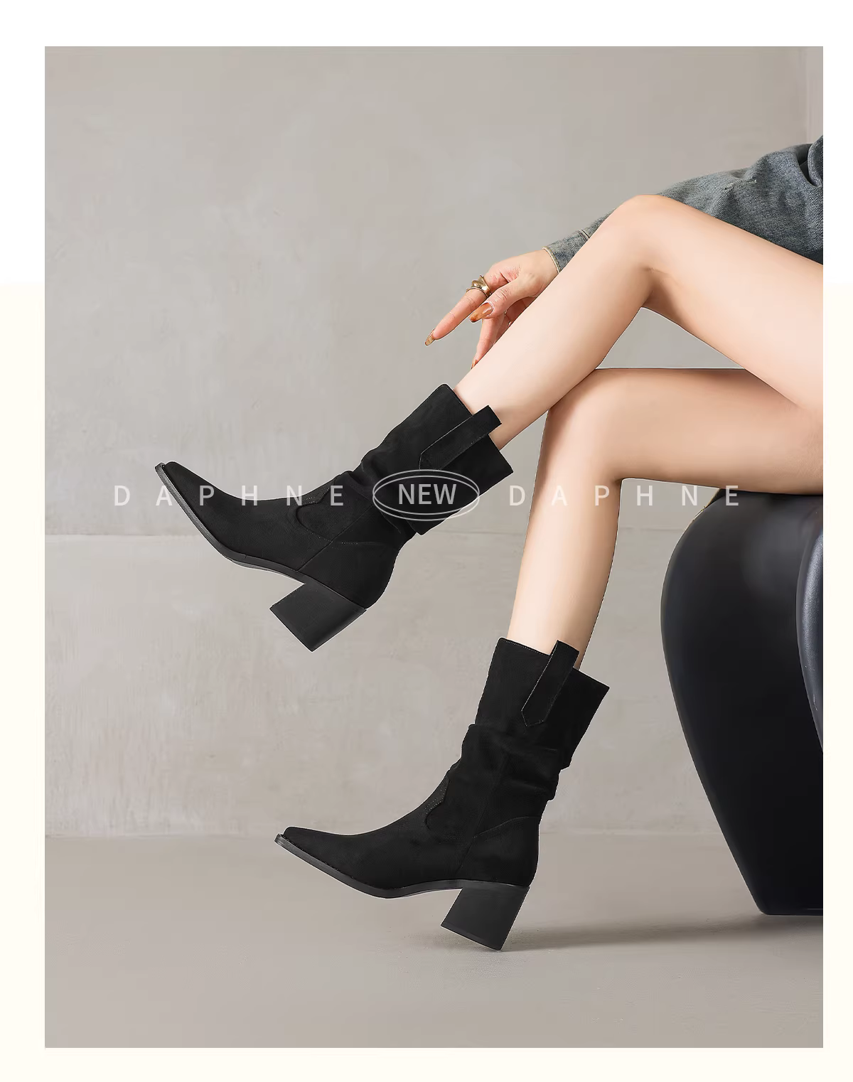- Giày bốt cổ ngắn mũi nhọn Daphne dành cho nữ, mẫu mới thu đông 2025, lót lông cừu, gót dày, kiểu dáng ôm sát, gót cao Melard.