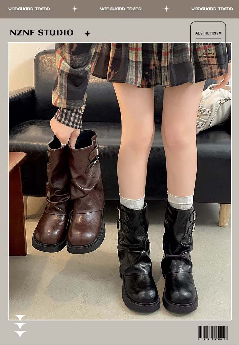 - Giày bốt cổ ngắn tăng chiều cao Melard Brown Chunky Heel dành cho nữ ở miền Nam nước Anh 2025 Giày bốt giảm béo mùa thu đông mới
