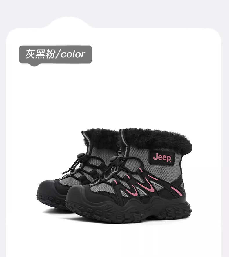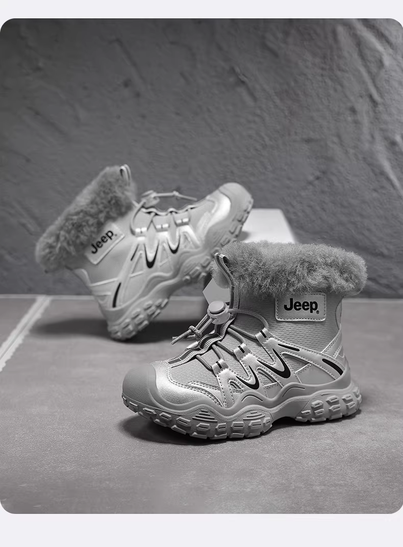 - Giày bốt cotton cho bé trai Jeep màu đen, lót lông cừu, tích hợp da và lông thú, giữ ấm, đi tuyết, mùa đông 2025, giày cotton cỡ lớn mới cho trẻ em