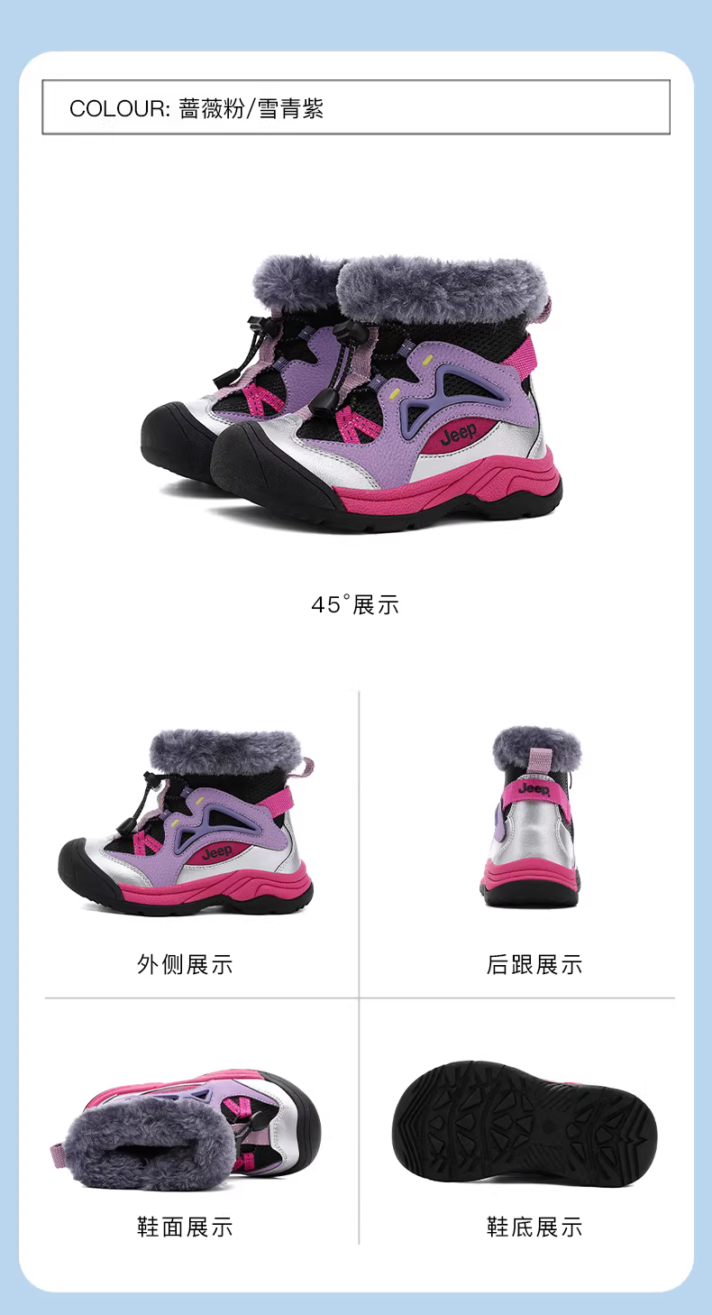 - Giày bốt cotton cỡ lớn dành cho bé trai Jeep, đế dày chống trơn, lót lông cừu, giày bốt mùa đông mới 2025 dành cho bé gái