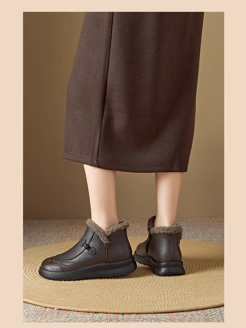 - Giày bốt cotton của mẹ Dadong dành cho nữ 2025 Mẫu mới mùa đông dành cho người trung niên và người cao tuổi, Giày bốt đi tuyết ấm áp lót lông cừu với đế da mềm chống trượt.