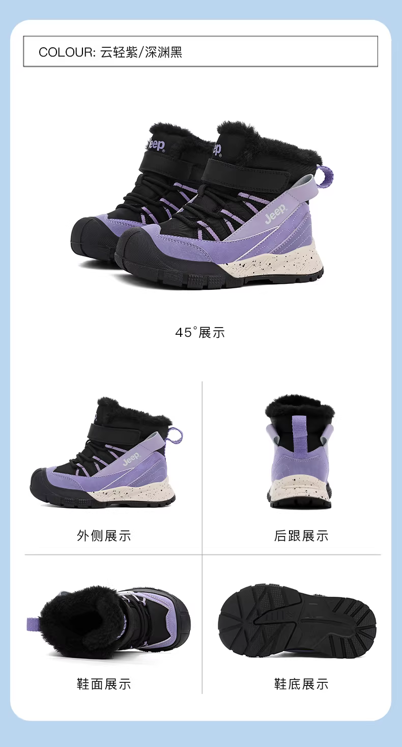 - Giày bốt cotton mùa đông giữ ấm chống thấm nước lót lông cừu cho bé trai Jeep, kiểu dáng mới 2025