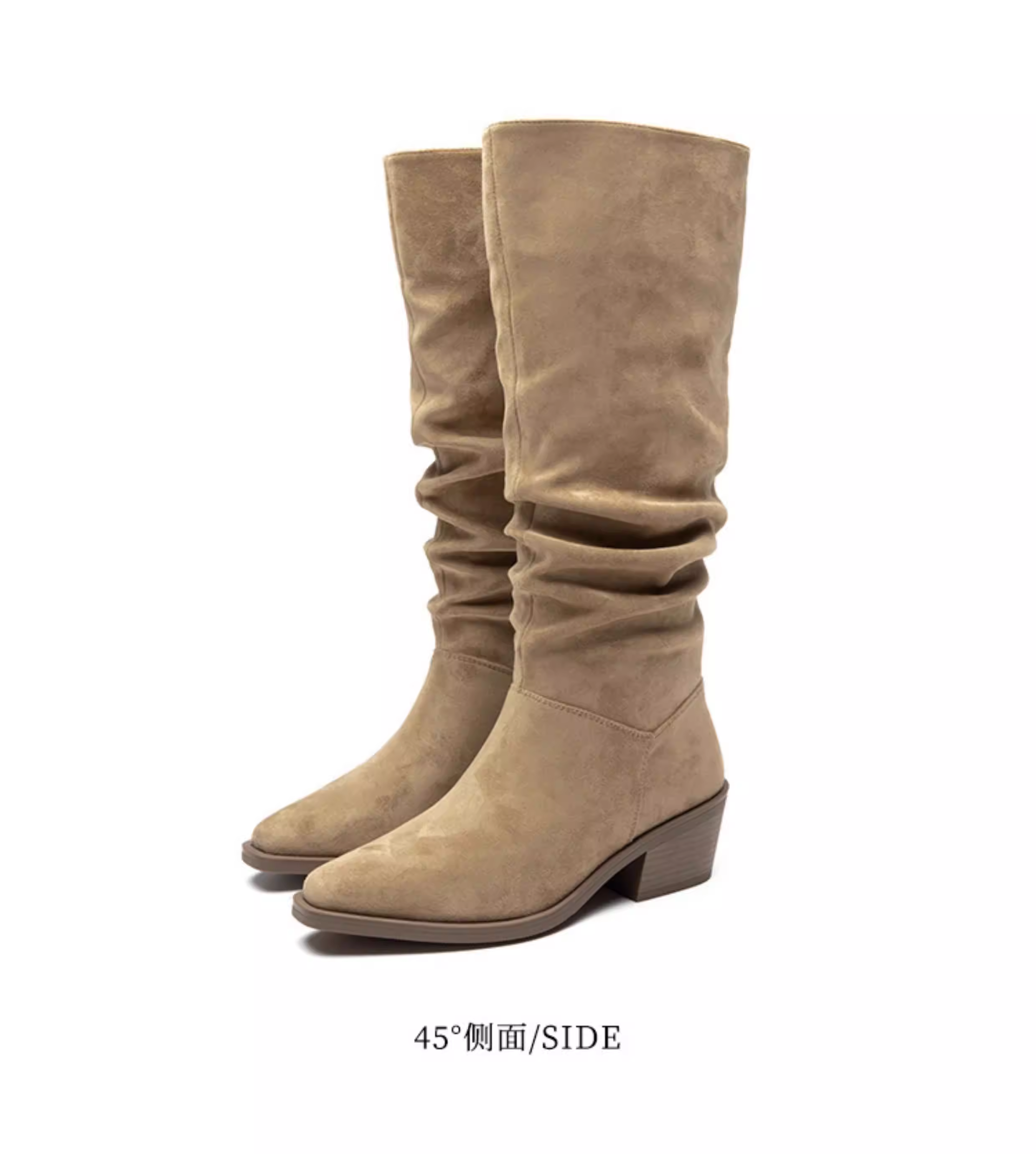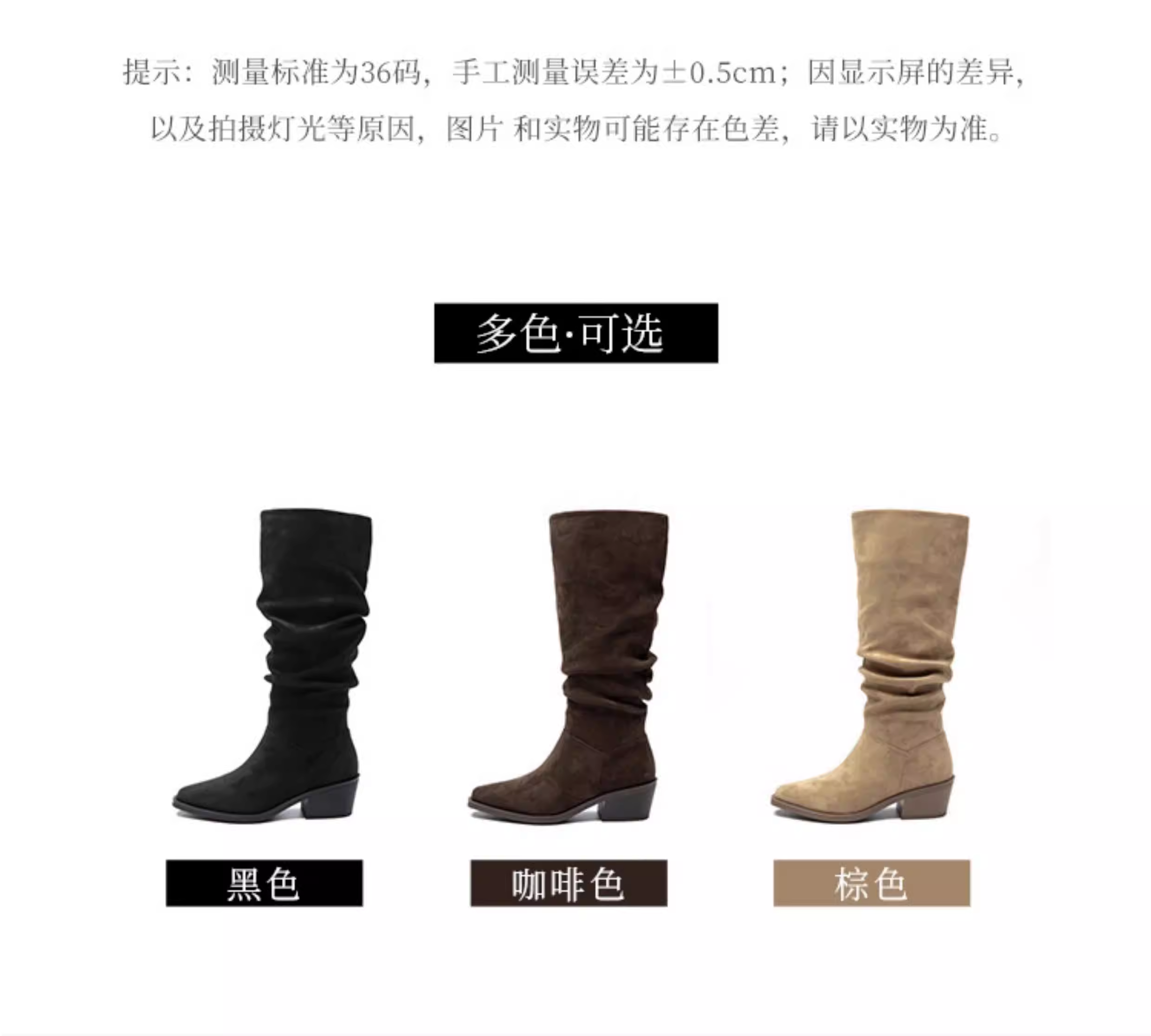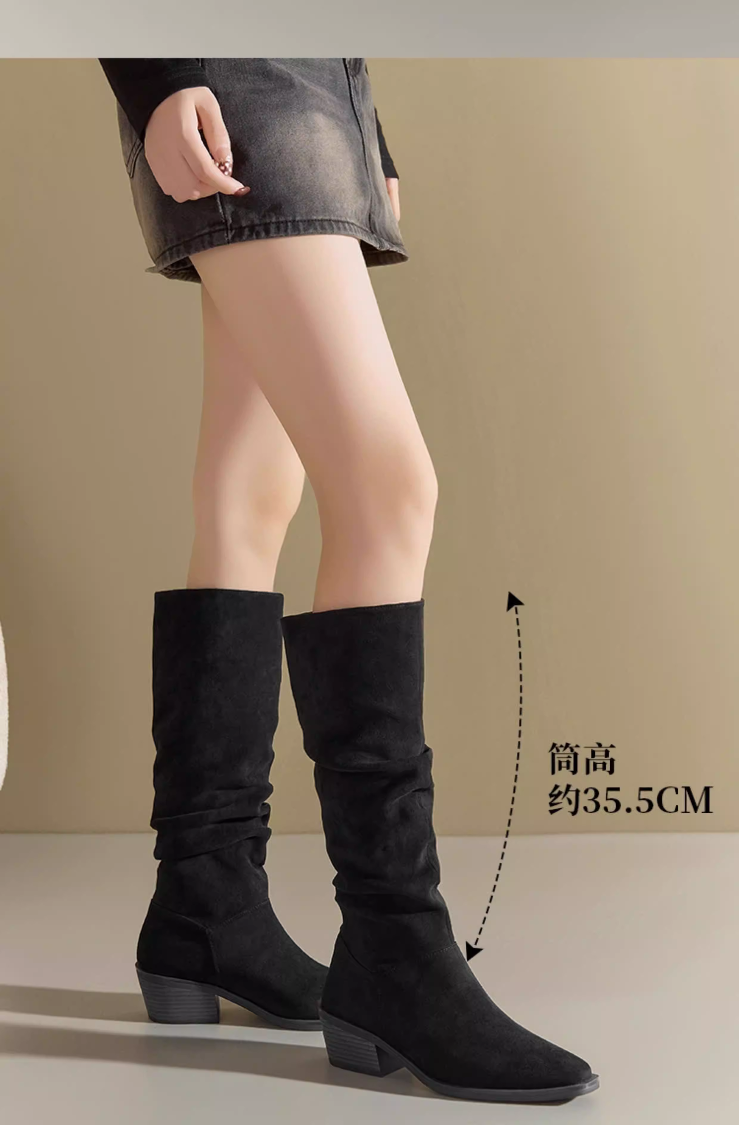 - Giày bốt da lộn Dadong nữ, kiểu mới thu đông 2025, màu đen mũi nhọn, kiểu dáng lười, size lớn, chân dày, giày bốt dài tôn dáng.