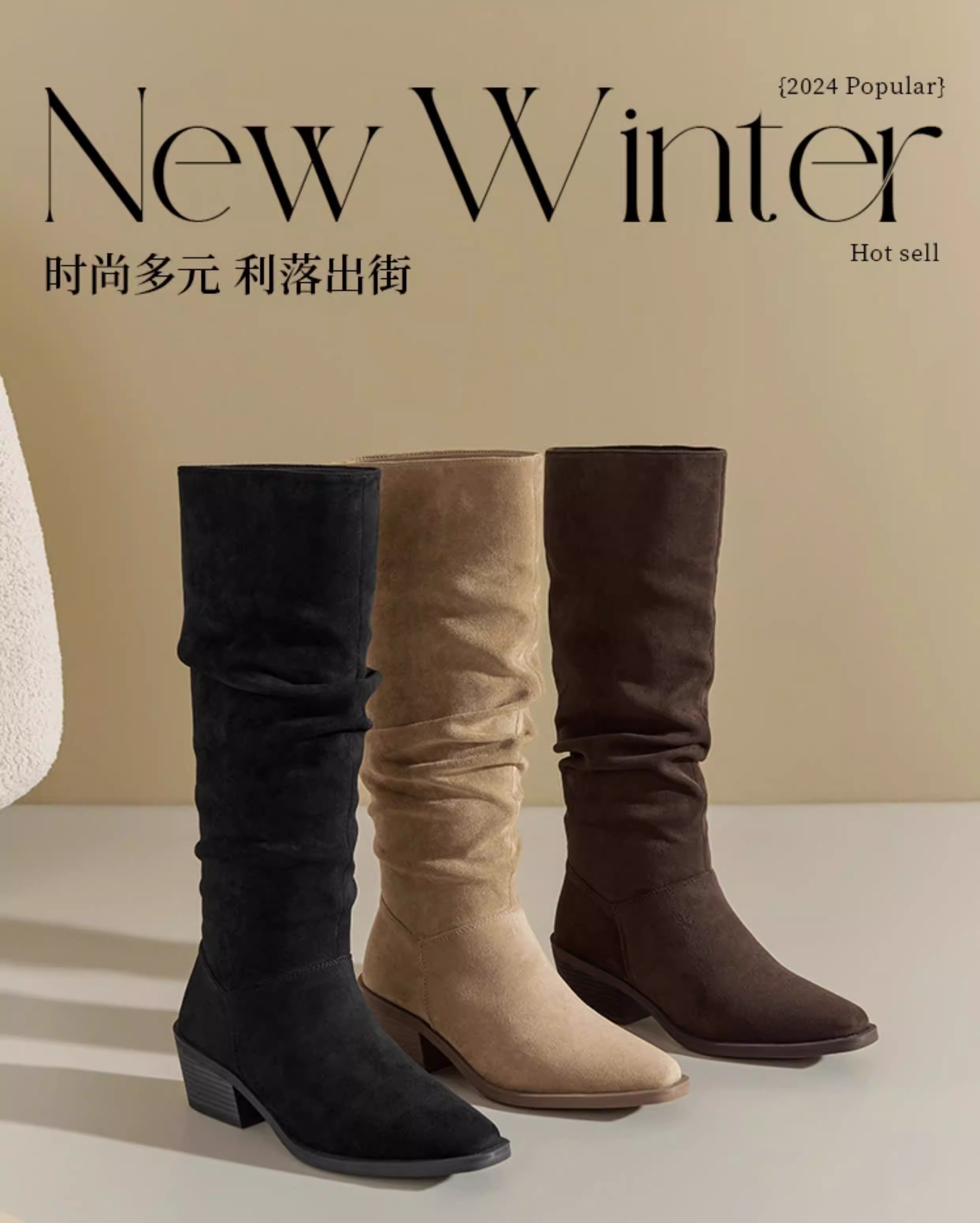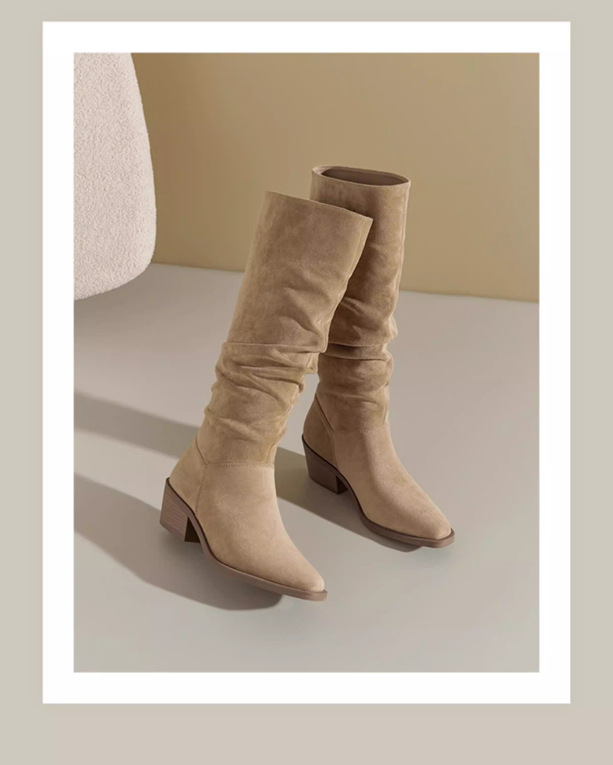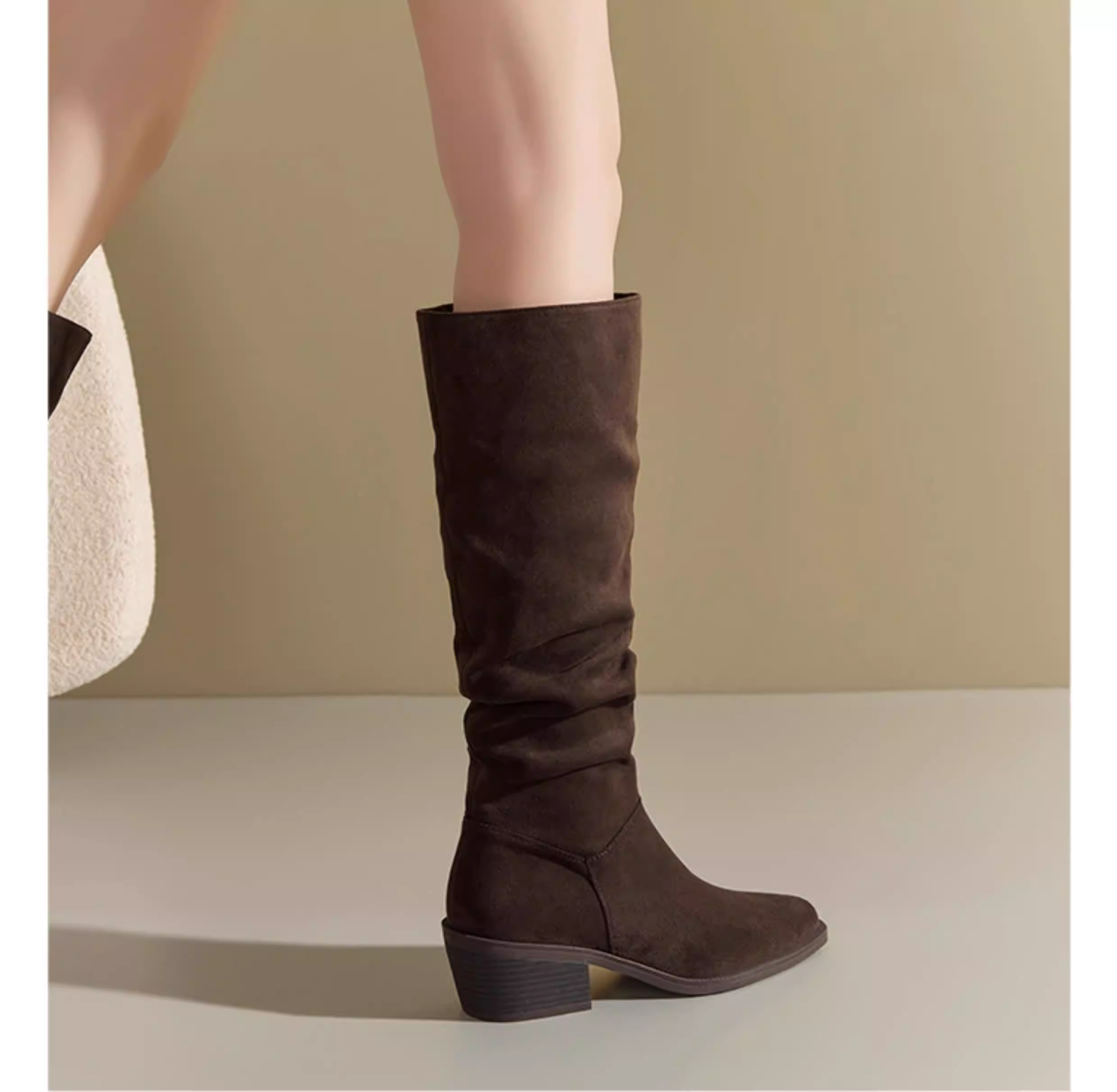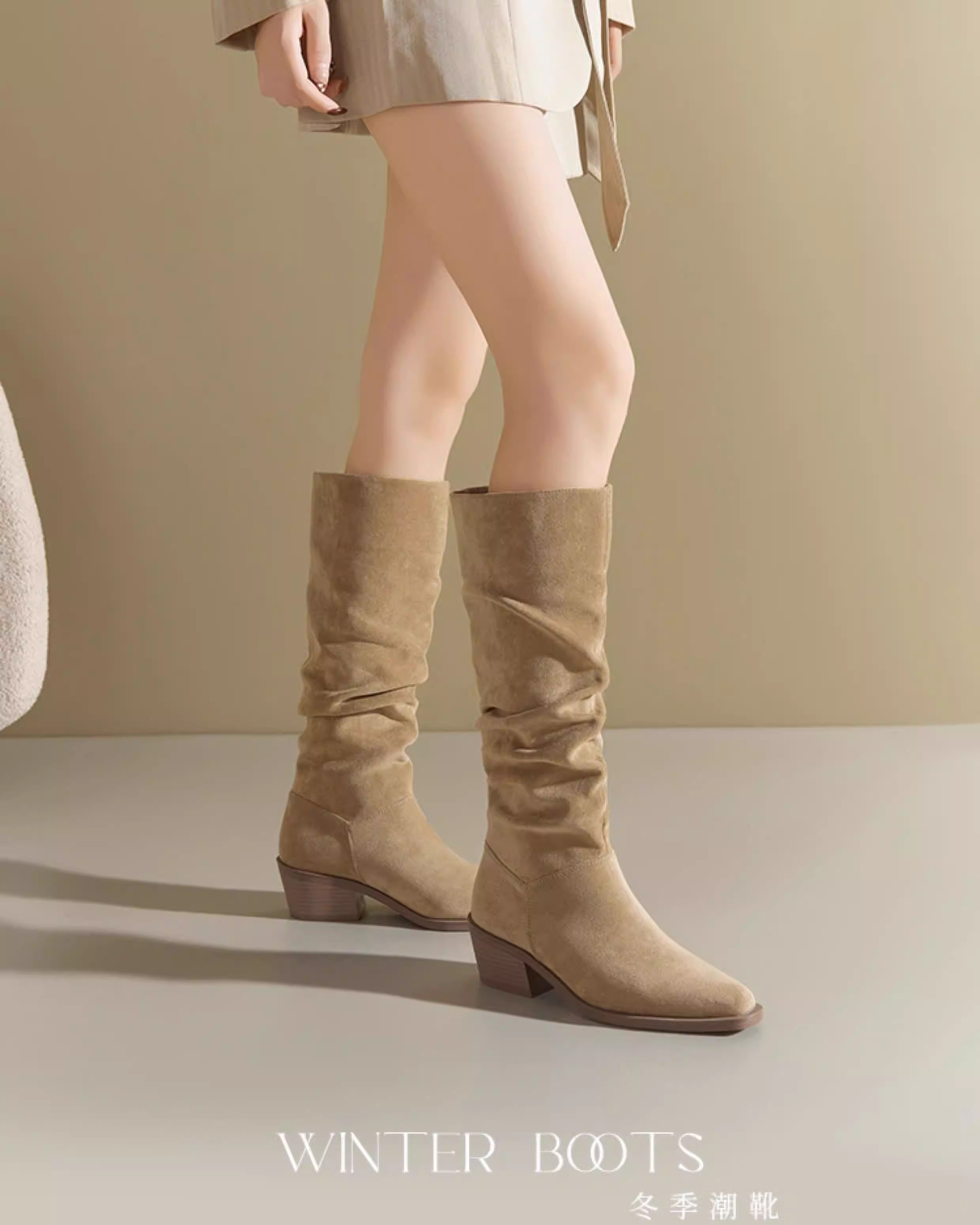 - Giày bốt da lộn Dadong nữ, kiểu mới thu đông 2025, màu đen mũi nhọn, kiểu dáng lười, size lớn, chân dày, giày bốt dài tôn dáng.