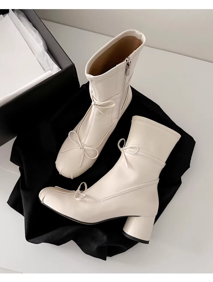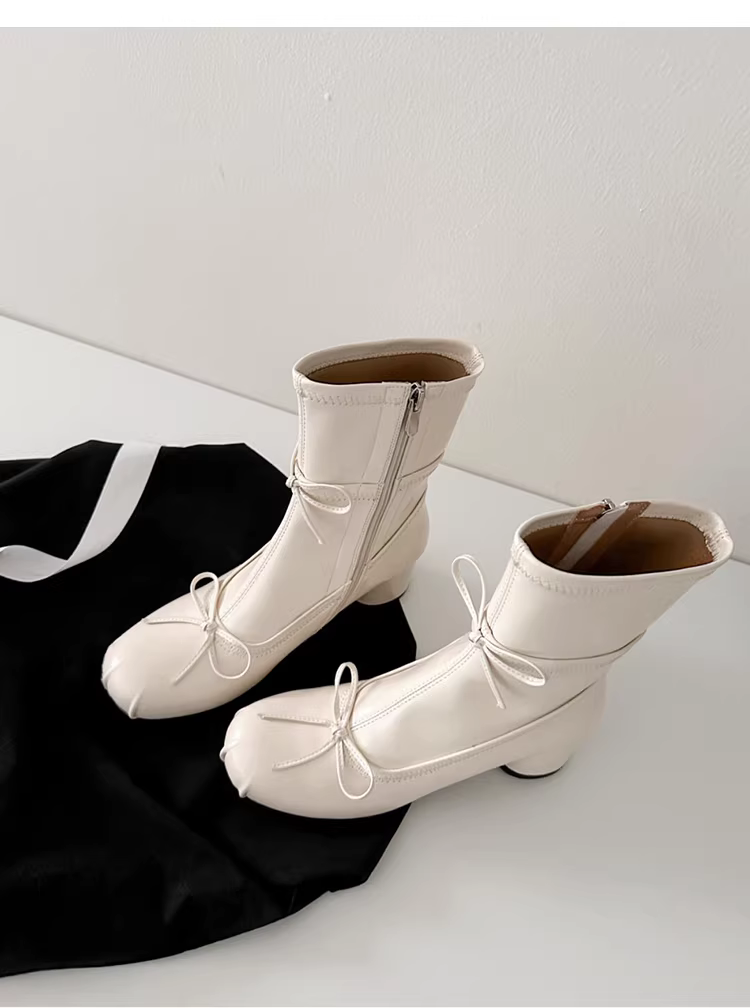 - Giày bốt da thật có dây buộc tăng chiều cao dành cho nữ, thiết kế độc đáo, phong cách múa ba lê Pháp, gót dày, giày bốt ngắn có khóa kéo bên hông.