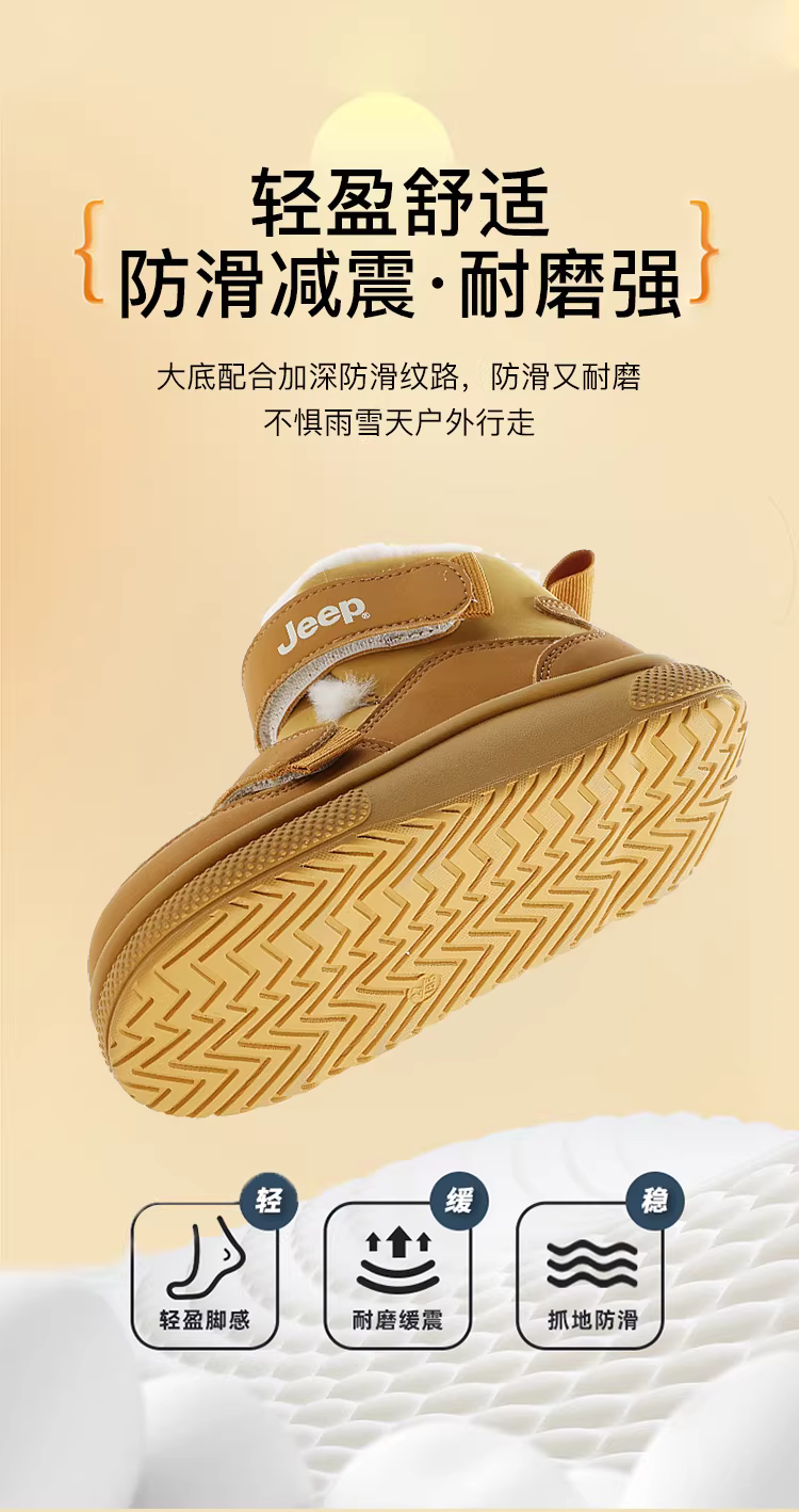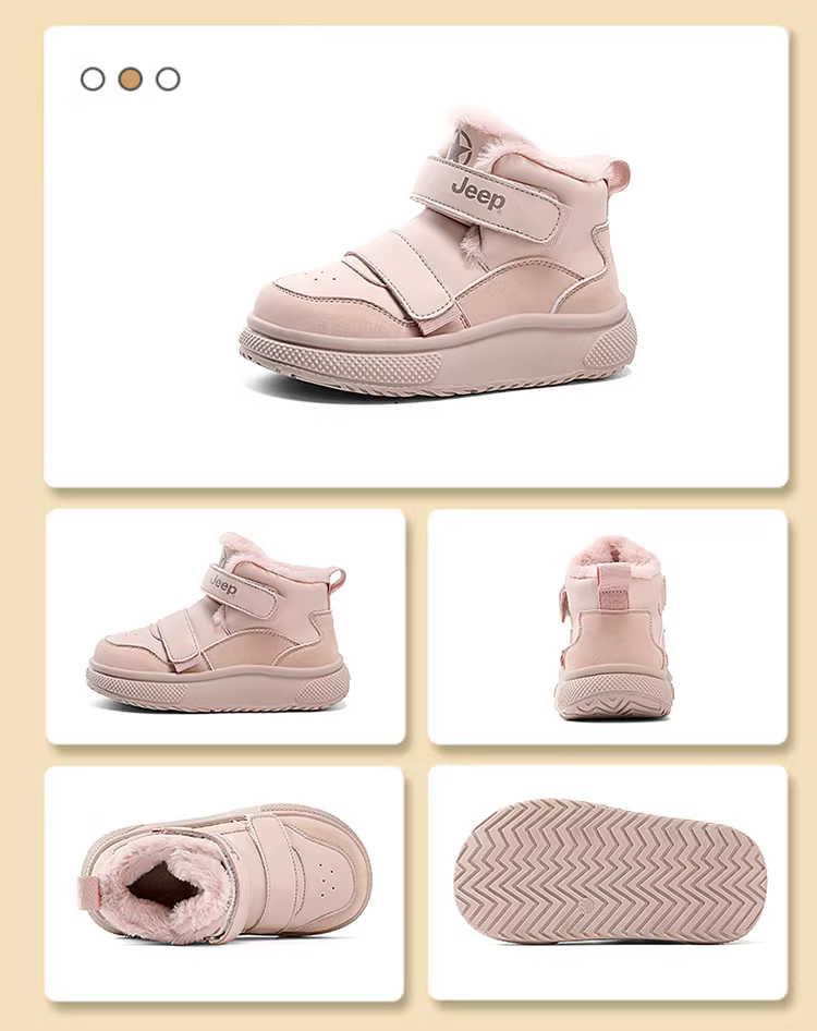 - Giày bốt da trẻ em Jeep có lớp lót lông cừu, giày cotton dày dặn cho bé trai và bé gái, bốt cotton mùa đông 2024, không thấm nước và giữ ấm.